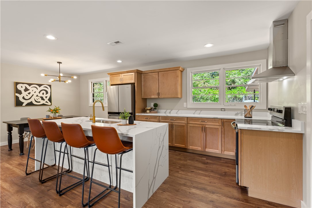 This Completely Remodeled 4-Bedroom Home was recently featured in an article in the Real Estate Section of the NY Times! Welcome to 813 Old Stone Church Rd, a beautifully renovated 4-bedroom, 2-bathroom home just minutes from Clemson University and Memorial Stadium. This charming residence boasts modern upgrades throughout, making it perfect for both relaxation and entertainment. Step inside to discover a spacious, open floor plan featuring brand-new flooring, updated lighting, and a stunning kitchen with a large island that showcases a luxurious Calacatta quartz top with a waterfall edge. The kitchen is fully equipped with modern appliances and contemporary finishes that are sure to impress. Enjoy your mornings on the large covered front porch or cozy up by the brick wood-burning fireplace in the living room. The primary bathroom has been updated with a dual vanity and a sleek tiled walk-in shower. Need extra space? The converted garage offers 317 sqft of heated and cooled flex space that can serve as an office, gym, or media room. While not part of the square footage range, this additional space brings the potential for a total of 1,824 sqft of usable living area. Covered concrete patio at back of home is great for hanging out whether its rain or shine. The home has been completely remodeled with key updates, including a new roof, new plumbing throughout, new electrical throughout, a new hot water heater, and an HVAC system that is only 3 years old, ensuring peace of mind for years to come. Best of all, there’s no HOA, allowing you more flexibility and freedom. Set on a private level lot, this home offers peace and tranquility just 4 minutes from the excitement of college football Saturdays. Don’t miss the opportunity to own this move-in ready home with all the modern comforts!
