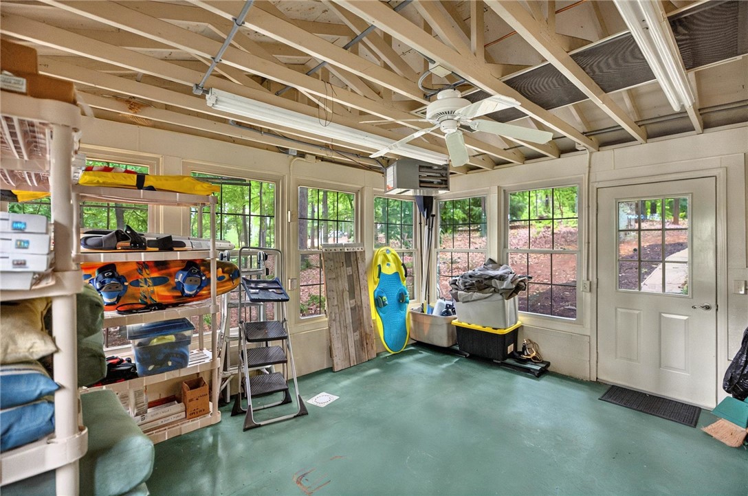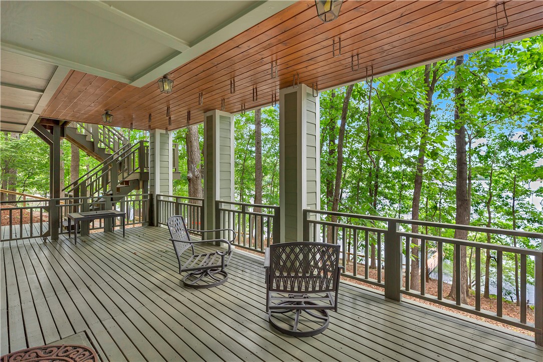 103 Tugalo Point – Updated Lake Hartwell Waterfront Home with Apartment, Garage, Greenhouse & Dock. Beautifully updated Lake Hartwell home featuring 3 levels of finished living space, a 4-car heated/cooled garage, 988 sq ft apartment, greenhouse, and a 2-story double slip dock with boat and jet ski lifts. The main level includes the primary suite with private bath, an additional full bath for guests, a combined living/dining area with masonry fireplace, a large vaulted multipurpose room with lake views, and a laundry room off the kitchen. Upstairs you’ll find three spacious bedrooms with walk-in closets and a third full bath. The finished lower level offers a large rec room, fourth full bath, second laundry room, flex room, and an unfinished workshop. A fully enclosed breezeway connects the home to both garages. The garage features a half bath, a service pit, and ample workspace—ideal for car enthusiasts. Attached to the garage is a heated greenhouse with dual utility sinks. Above the garage, the private-access apartment includes a full kitchen, living area with hardwood floors, carpeted bedroom, and laundry hookups—perfect as a guest suite or home office. A concrete path leads to the dock, complete with shoreline steps, upper-level decking, power, and irrigation pump. Additional features include a central vacuum, whole-house fan, irrigation system, solid wood interior doors, and a whole-house backup generator. Sold fully furnished—move in and start enjoying lake life immediately!