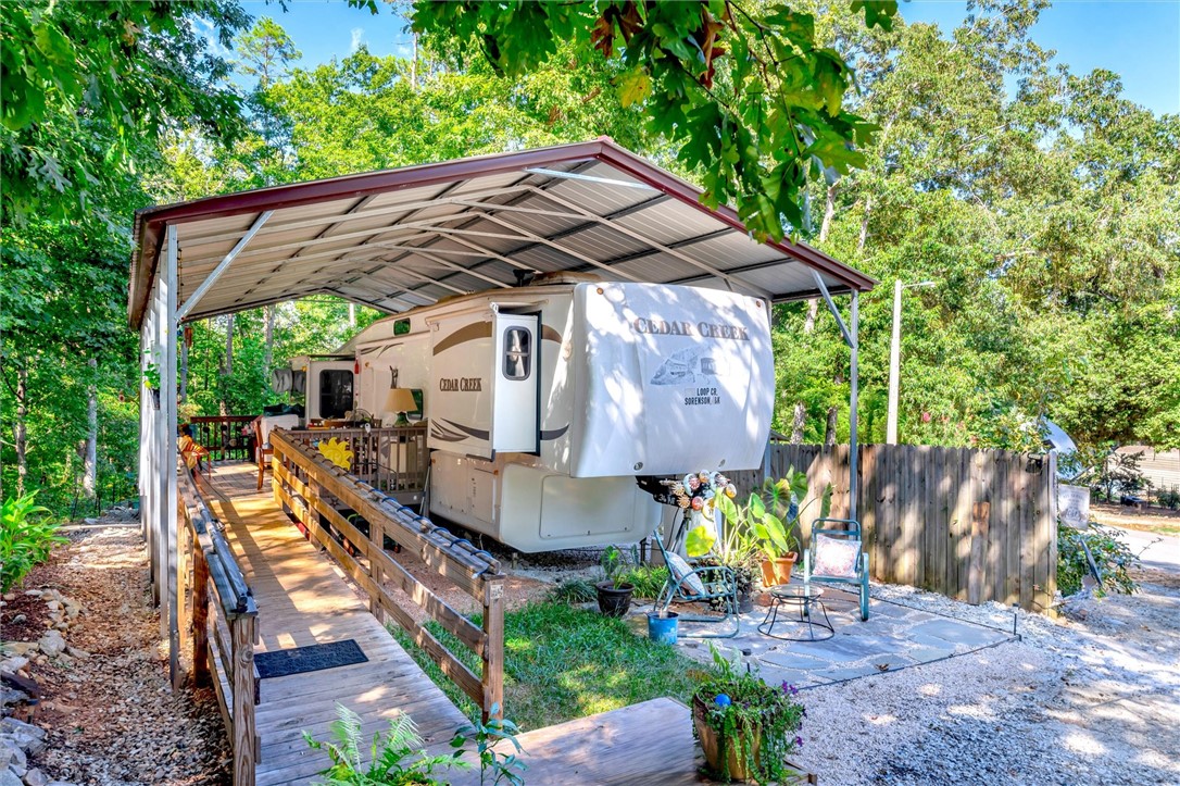 Beautiful lot in the Foxwood Hills community. Included in this sale is the RV, cover, and all of the wonderful Foxwood Hills amenities. A 2010 Cedar Creek 40' 5th wheel with handicap access is located in the Hatteras 1 section of Foxwood Hills community. If you're looking a second home or weekend getaway this home is for you! cover and all of the wonderful Foxwood Hills amenities. Electric updated at pole in 2023. You will never lose electricity with 4 marine batteries and also propane as back-ups! New A/C 2024. There is an Auto Hydrollic Adjustment leveling device for RV. There is a built-in satellite system on roof with power switch in the bedroom. Newly upgraded items include fresh paint, new toilet, flooring, tankless water heater, new generator and storage shed. The entrance has a beautiful arched entry way into the living room area that boasts a gas log fireplace, ceiling fan, built-in shelving, and a glass door that allows for privacy. Separate full bath with walk-in shower. At the rear of the RV is the master bedroom with queen sized mattress, built in storage, and a washer/dryer. Outside you find a handicap access ramp, a large sized deck and patio with table and chairs. You will also find passion fruit and blueberry bushes. The RV is all hooked up with all utilities. There are 2 public boat ramps nearby with access to Lake Hartwell. This Lot with RV is in a great location, with great amenities, and great neighbors all at a great price! Schedule your private showing today! Taxes listed include RV and lot.