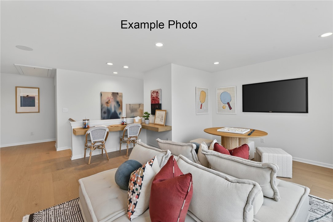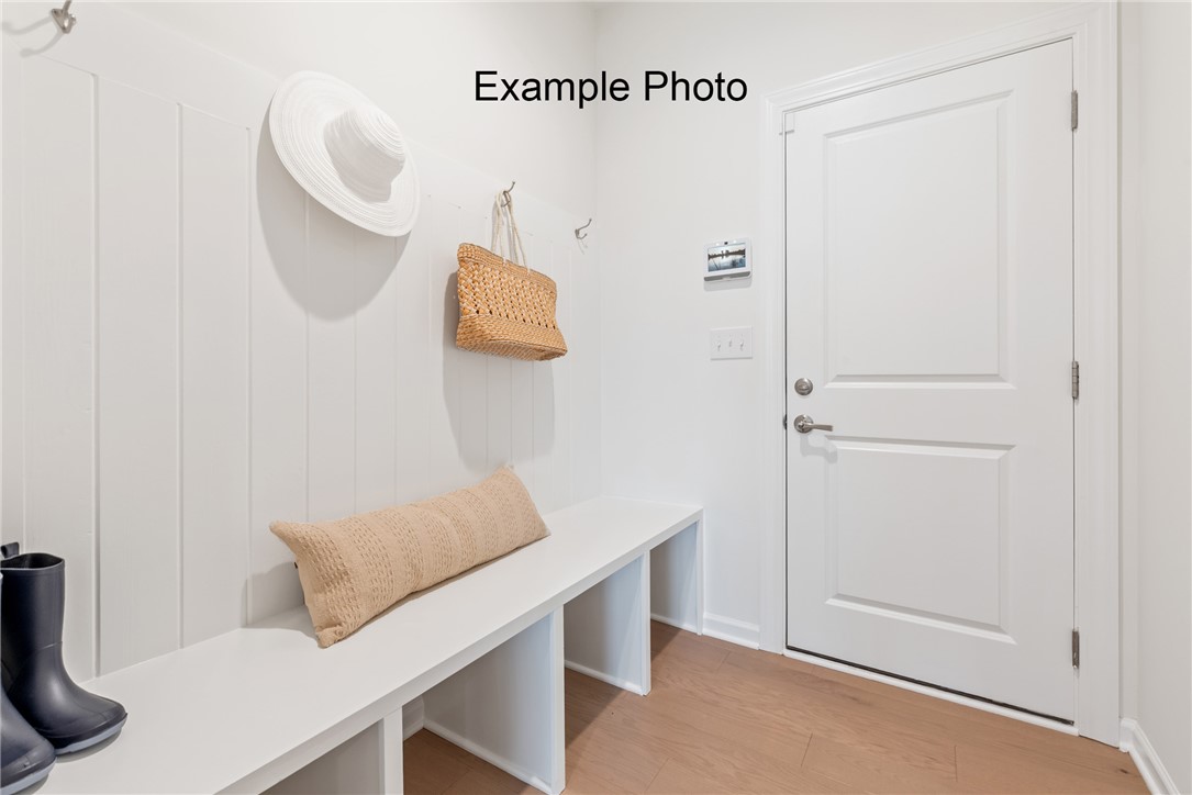 This new home offers a spacious, open layout, Craftsman-style exterior, and energy-saving features, located just 2 miles from Pendleton High, and walking distance from the community pool. Enjoy the wooded view from the rear covered porch. The exterior includes Hardie® cement board siding with board & batten accents, 25-year shingles, and a covered front porch. Off the foyer is a guest bedroom and full bath. Large Kitchen features quartz counters, tile backsplash, 42" grey painted cabinets, GE stainless steel appliances with a gas range and microwave vented outside, double trash pullout, large under-mount sink, and walk-in pantry. Family room has a gas fireplace flanked by niches, and the Dining area is wrapped in windows. Convenient drop zone in the mudroom for daily essentials. Upstairs you'll find a large open Loft for extra gathering space, and 3 generously-sized secondary bedrooms, 2 of which share a Jack & Jill bath. The large Premier Suite has an oversized walk-in closet and bathroom with large tiled shower with a semi-frameless glass surround. All bathrooms include quartz counters, grey cabinets, and tiled floors. LVP flooring is throughout most of the first floor, with oak treads on the stairs. Energy-saving features include tankless gas hot water heater, attic tent for pull-down stairs, and radiant barrier sheathing. Picture are Representative example photos.