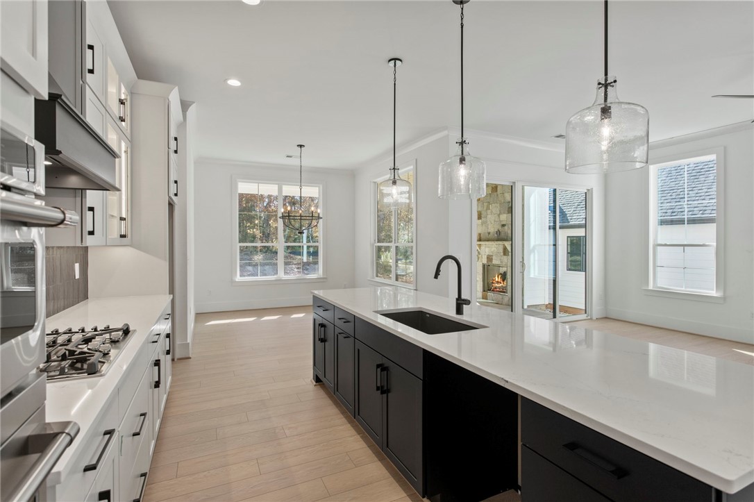 Ready now! Discover the sought-after Polar floor plan at 111 Pine Hill Way in Kingswood Cottages—a Rosewood Community offering modern, low-maintenance living in the heart of Clemson. This stylish home features a Ethereal Noctis quartz kitchen, soft-close cabinetry with a cabinet hood, and a striking black gloss tile backsplash set in a vertical stack pattern. The open-concept design connects seamlessly to the family room, highlighted by a floor-to-ceiling stone fireplace and elegant 10-foot ceilings. The main-level owner’s suite boasts a frameless black shower, quartz countertops, black fixtures, and a penny tile shower floor. Upstairs, you’ll find two spacious bedrooms, a loft, and beautiful finishes throughout. Located minutes from Clemson University and Lake Hartwell, this home combines timeless design, quality craftsmanship, and the easy lifestyle Rosewood is known for. Special pricing available—must close by December 31, 2025!