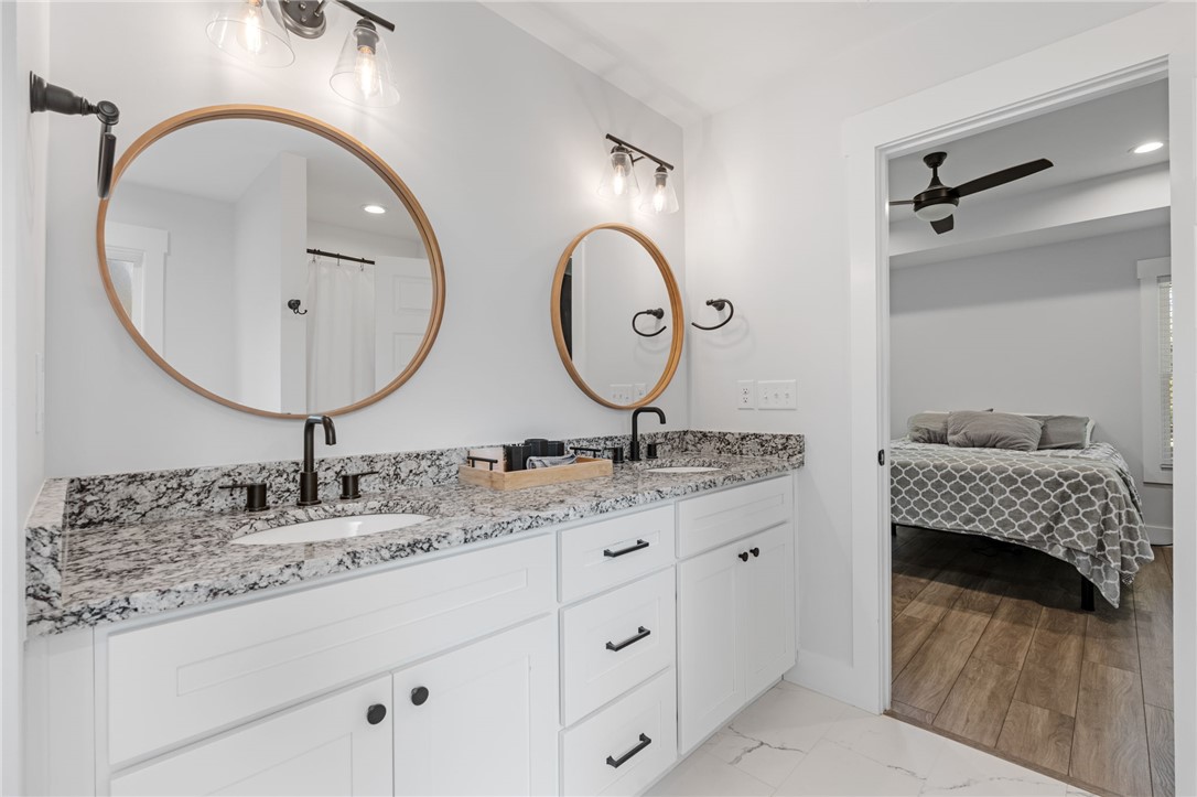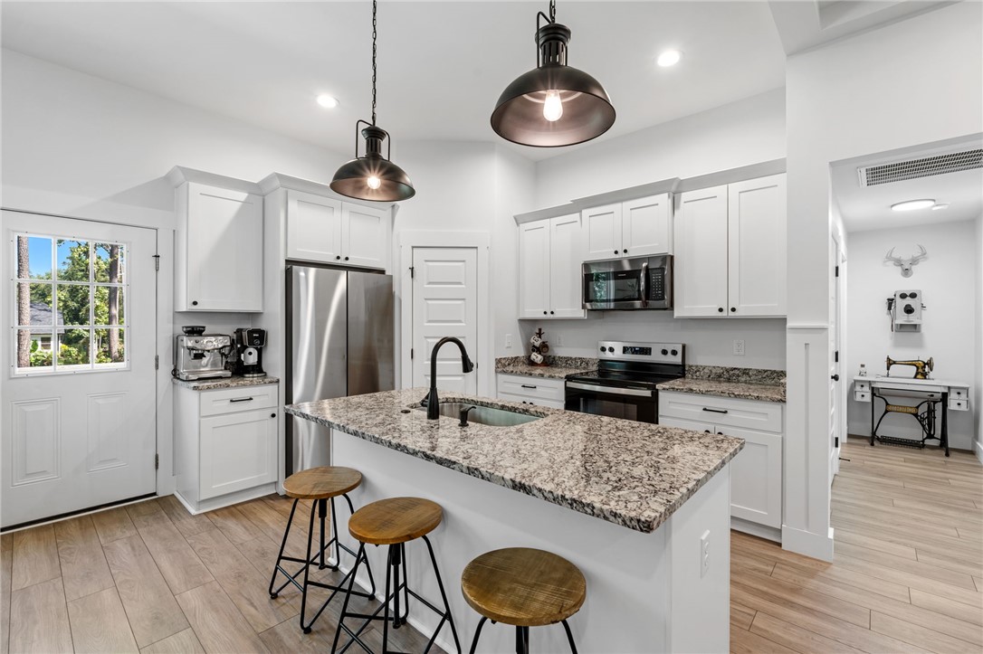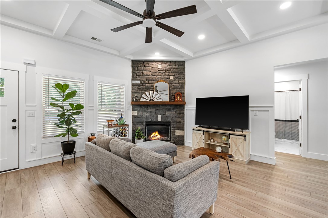 Welcome home for the holidays to this spectacular almost new modern farmhouse, on a half-acre, partially wooded lot that truly has everything you've dreamed of and more, including an improved price! Thoughtfully designed and solidly built, this home combines timeless farmhouse charm with today's modern conveniences. From the moment you step inside, you'll notice the stunning attention to detail, gorgeous floors flow throughout the living spaces, while elegant countertops, custom trim work, and stylish fixtures add warmth and character to every room. The open layout is perfect for both everyday living and entertaining, offering seamless transitions between the kitchen, dining, and living areas. Showstopping custom stone fireplace creates a beautiful focal point. Natural light pours in through large windows, creating a bright and inviting atmosphere. Every detail, from the craftsmanship to the finishes, has been carefully chosen to create a home that is as functional as it is beautiful. Located in an attractive community, this home not only offers beauty and comfort but also convenience to shopping, dining, schools, and more. No detail has been overlooked in the design of this masterpiece, you'll immediately feel right at home. Don't miss the chance to make this dream home yours. Schedule your showing today and experience all this incredible property has to offer!