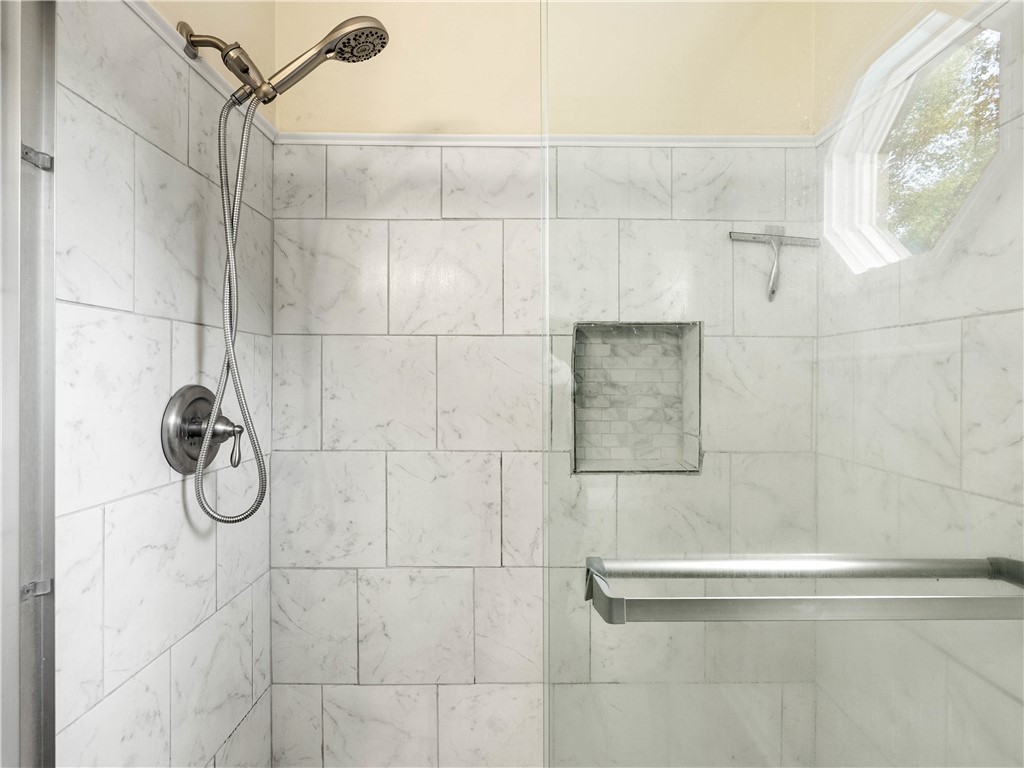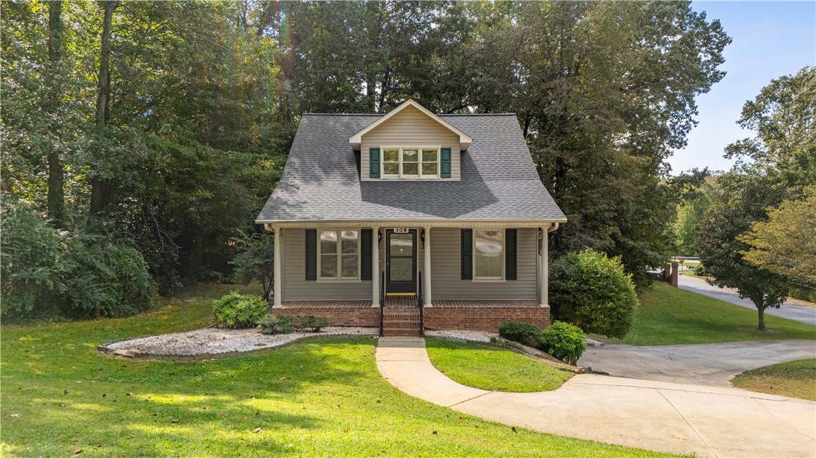 Charming 3-bedroom, 2-bath home on an expansive .88-acre lot in the Rock Port subdivision. A welcoming brick staircase leads to a lovely rocking-chair front porch, perfect for relaxing and enjoying tranquil evenings. Inside, the main floor features an open-concept layout with an updated kitchen showcasing granite countertops and white cabinetry, a bright breakfast nook with a bay window, and two guest bedrooms sharing a full bath (one could serve as a downstairs master if desired). A spacious laundry closet with white cabinets adds convenient storage. Step out to a private screened-in back porch with an adjacent deck, ideal for entertaining and grilling. Upstairs has a large master suite (or a second guest suite) with an en-suite bath, double vanity, tub/shower combo, and two walk-in closets. The walk-down to the garage reveals a partially finished basement with a flex room and a gas log fireplace, providing versatile living space.The side-entry 2 car garage includes two workshop areas, a yard door, and a large storage area, while the circular driveway gives ample parking. Curb appeal is enhanced by beautifully maintained front, side, and back yards with ornamental and mature trees. This home is USDA eligible, and is move-in ready. Located just 15 minutes from downtown Spartanburg. Only 8 minutes from Jonesville. 15 minutes to Union.