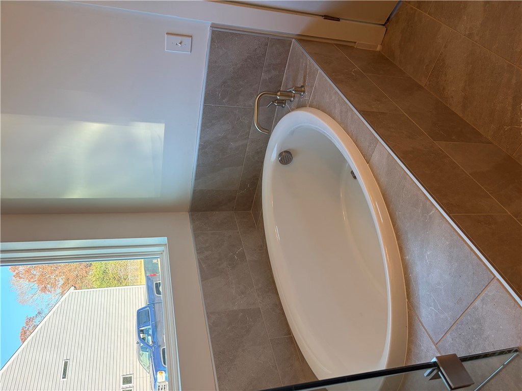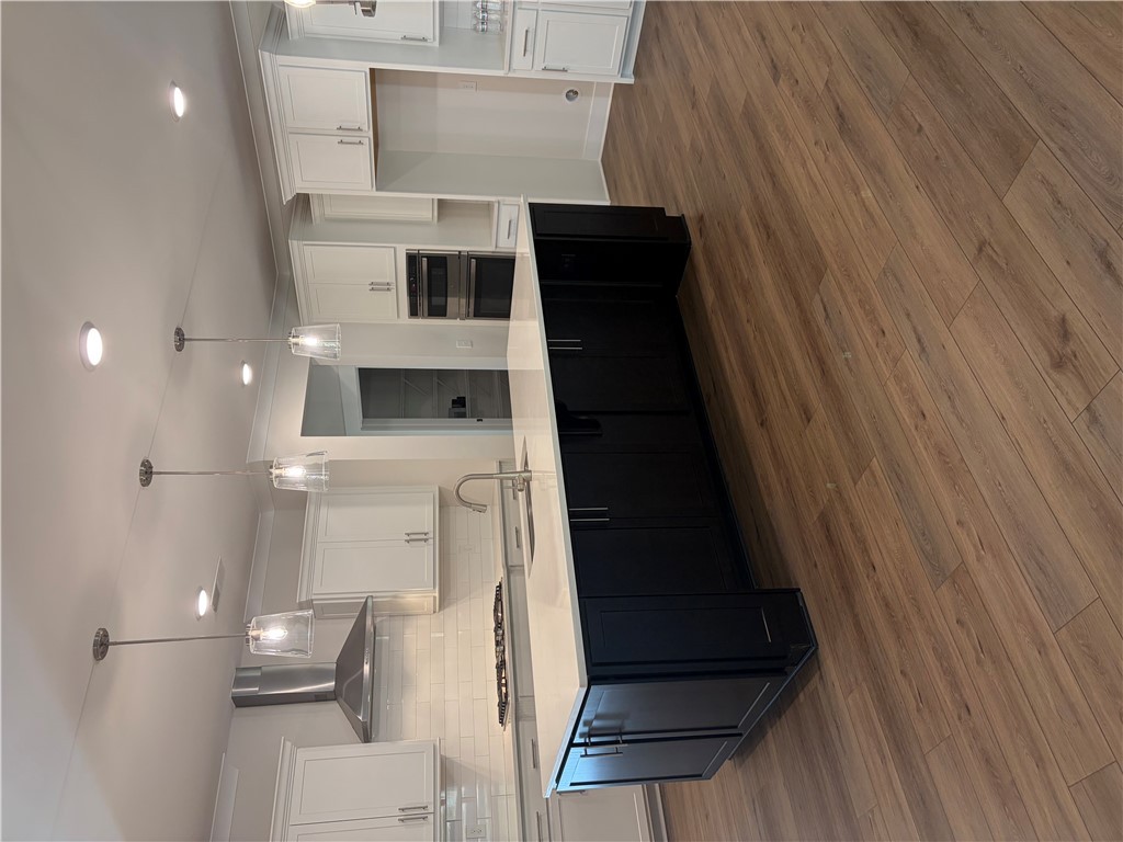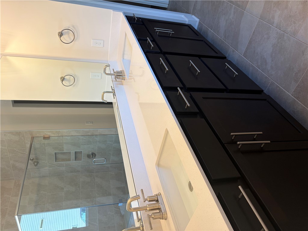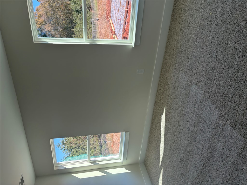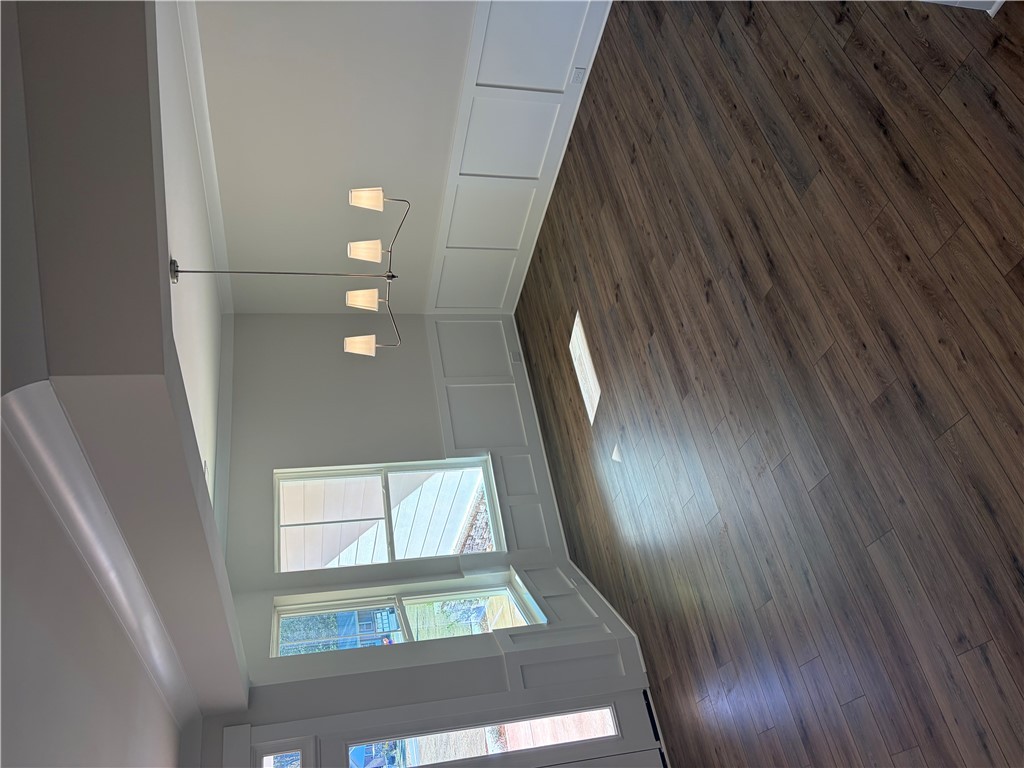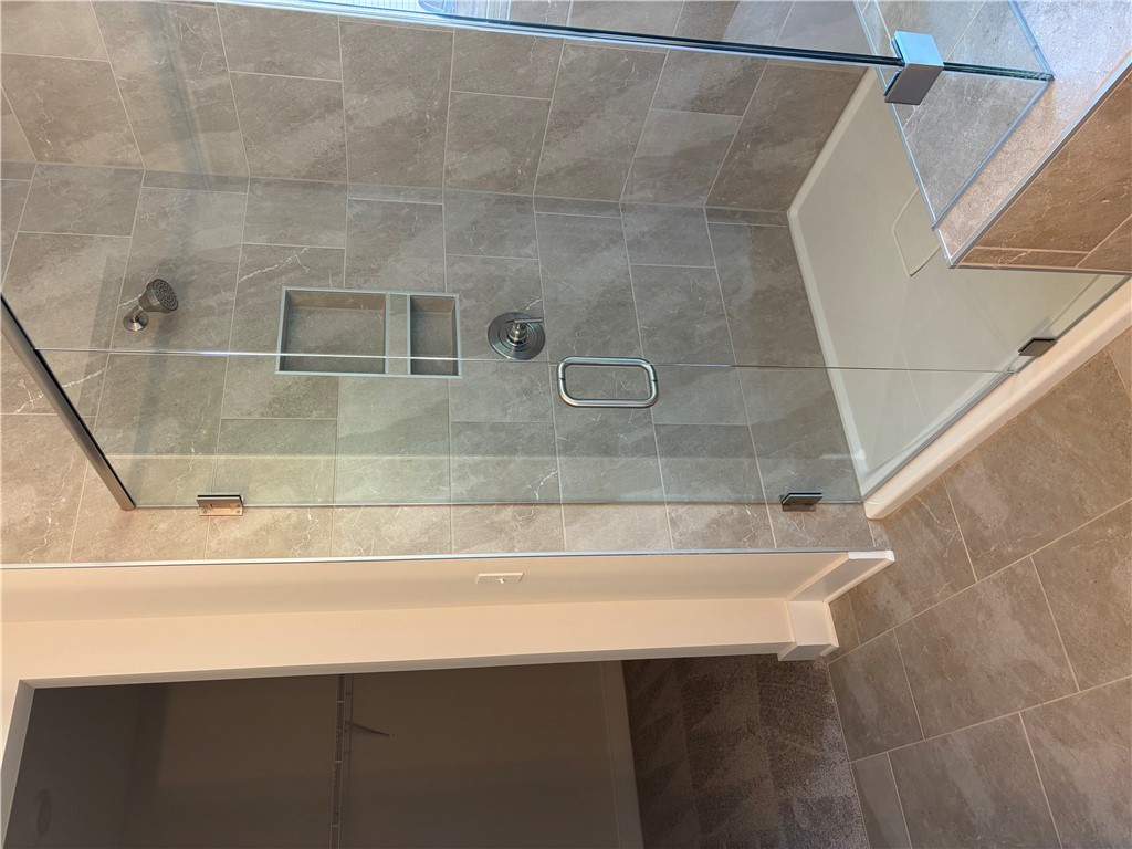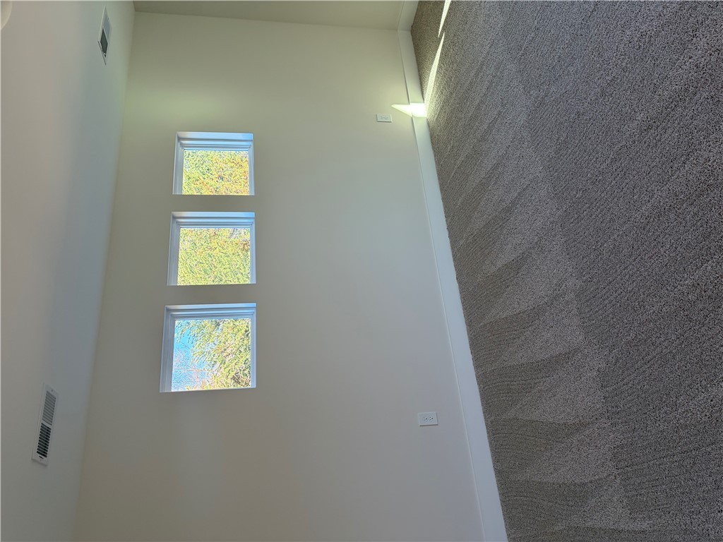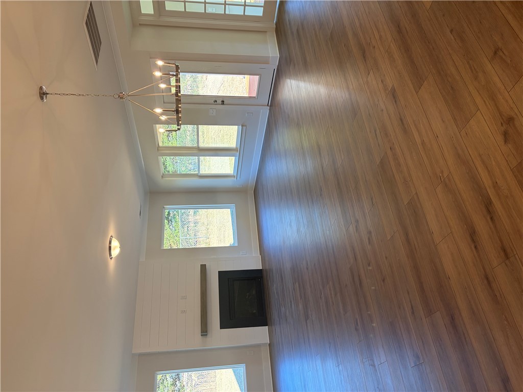 New construction Craftsman inspired home featuring 4 bedrooms, 3.5 bathrooms, and an open floor plan. The main level includes a foyer, formal dining room, and a kitchen with upgraded cabinetry, quartz countertops, built-in chimney hood, gas cooktop, and built-in microwave/oven combo. The kitchen opens to an informal dining area and a family room with a shiplap fireplace. Covered back patio provides outdoor living space. Split bedroom layout on the first floor includes a private primary suite at the rear of the home. Primary bath includes a tiled walk-in shower and garden tub. Additional first-floor features include a home office and laundry room. The second floor offers a loft area, one additional bedroom, and a full bathroom. All secondary bathrooms feature upgraded finishes. Home includes a built-in pest control system. Garage is finished with drywall, paint, electrical outlets, and lighting.
