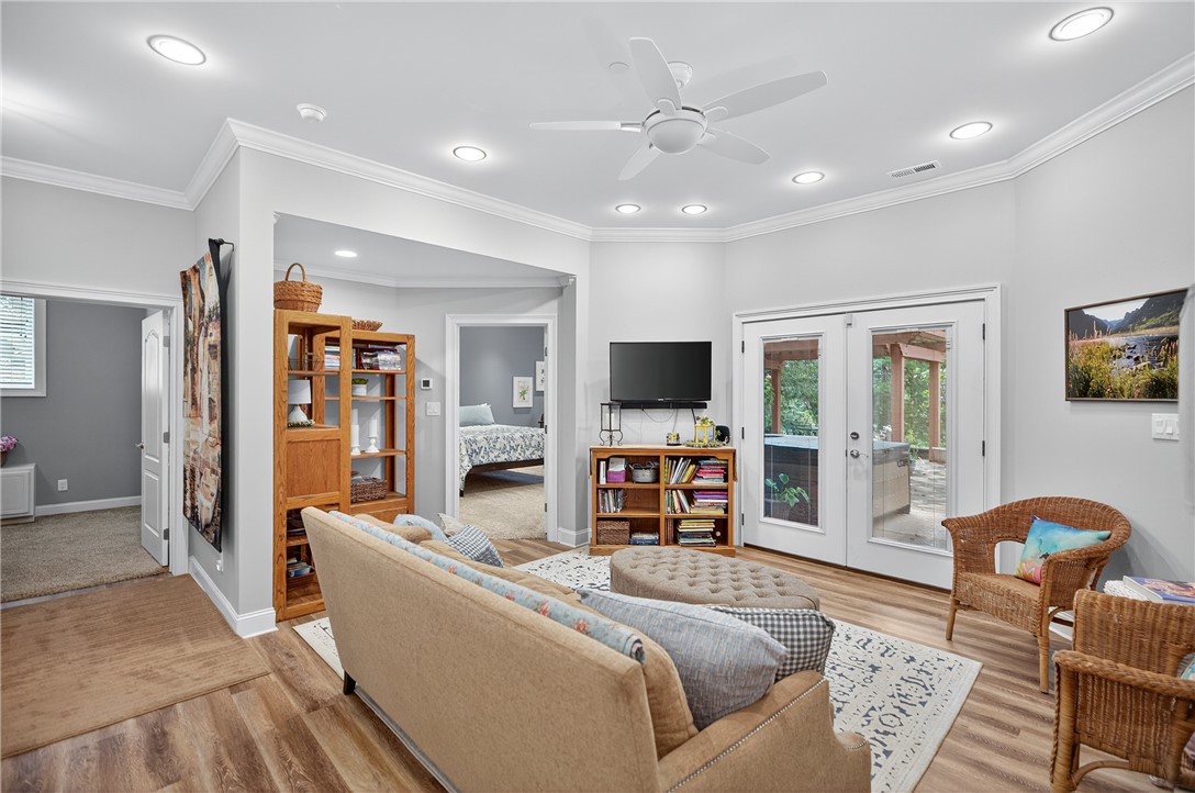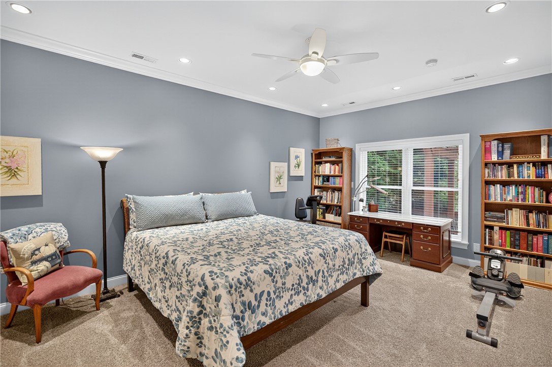 ABSOLUTELY STUNNING Lake Hartwell Waterfront Home with Covered Slip Dock & Lift. Located in West Anderson near Portman Marina, shopping, restaurants, golf and medical facilities. Current owners have upgraded home lovingly and with great detail and craftsmanship offering comfortable lakeside living and immense value. They have thought of everything so you can move in and start enjoying lake life at its best. This custom brick 5000+ sq. ft., 5 Bedroom, 3 Bath, 2 Half Bath, 3 Car+ Garage home boasts a stately entry from a circular drive, as well as, dedicated drive for garages. Two story foyer welcomes you to the main level of home where you will find formal dining w/ gas fireplace & triple tray lighted ceilings, parlor w/ wine bar, comfortable lakeside living room w/ gas stone fireplace, and truly a chef's eat-in kitchen. Custom cabinetry, a suite of Viking Commercial grade appliances, Thermador built-in fridge, extra work sink, and custom task lighting, all while enjoying the views of the lake. Access large screened porches w/ retractable sun shades from multiple rooms for outdoor relaxation. Additional screened porch off Primary Suite w/ built-in wet bar/coffee station, beautiful lighted tray ceilings again, sitting area, and luxurious bath w/ heated floors. Double sinks with additional vanity area, bidet, large walk-in shower, his & hers walk-in custom closets complete the space. Also on the main level are 2 more bedrooms w/ jack-n-jill bath. Owners are currently using one for home office. Walkout basement level has been finished into living quarters w/ separate entrance, 9' ceilings, living room w/ lake views, full custom kitchen w/ butcher block counters, 2 bedrooms & a full bath. Easy access to covered patio and pergola offers private outdoor spaces as well. Wow! a climate controlled woodworkers dream workshop in place with additional garage bay door & half bath. Optionally this space could easily be converted to additional living, exercise, hobby, or gaming area. Basement even has a "Safe Room" that could be accessed from master closet if desired. There is an abundance of storage also located in the 2nd floor walk-in attic. It is fully floored and plumbed for another bath . If finished this could add approx. 1700 sq. ft. of living space. This very gently sloping lot has a paved cart path to the covered dock w/ fresh paint, new decking, and hydraulic boat lift, power & water. With 17' at full pool dock can stay fixed all year. Extra driveway has RV hookup w/ water, power, & septic. Irrigation system front & back, fenced area, and even a producing peach & apple tree add to the mature landscaping around the home. Special features also included: 2 Gas Hookups on Screened Porch & Covered Patio below, 20 AMP outlet for freezer in garage, 100 AMP panel added to each shop area, Fire Suppression System throughout, Intercom System throughout, Custom Wood Shutters /Blinds, Custom Closet Systems, and Ceilings up to 20'. ACOE has given blessing for enhancement to dock as follows 34' W x 28' L, 60' Gang Walk w/ upper Sundeck. Gutters Guards on all gutters. No HOA or Restrictions. So many reasons to schedule your private viewing today of this spectacular waterfront home.