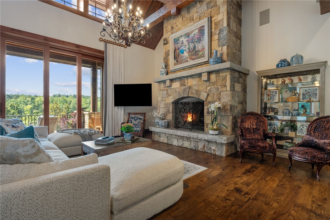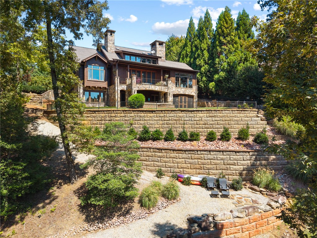 Ridge Top at The Cliffs at Keowee Falls—custom waterfront by Resort Custom Homes on the lake’s most coveted Falls Creek cove, with long-water views and the sound of the waterfall. A short walk or golf-cart ride to the Wellness Center and Clubhouse. Douglas-fir siding with natural stone and a synthetic cedar-style roof set the tone. Inside, a majestic great room with 22’ vaulted ceilings, twin stone fireplaces, and disappearing sliders opens to a lakeside flagstone porch. Chef’s kitchen with Wolf gas 6 burner range/double ovens, paneled double Sub-Zero, warming drawer, two dishwashers, oversized island with full sink, and walk-in pantry with ice maker. Main level includes a lake-view primary suite with spa bath, an additional ensuite, and a newly added light-filled sunroom with fireplace. Over the 3-car garage, an 8-bed bunk suite offers a separate living area, kitchenette, and full bath. The terrace level features a large fireside lounge, full bar (sink, fridge, dishwasher, ice maker, wine cooler), media room, two ensuites (one functions as a second primary with yard access), second laundry, screened porch, flagstone patio with fire pit, and an infinity-edge spa overlooking the lake. Outdoors: level, fenced lawn and a thoughtfully terraced path with seating landings to the water. Exclusive enclave HOA provides low-maintenance living (lawn/irrigation service and exterior staining on a 3-year cycle). Convenient to Seneca, Walhalla, and Clemson. Cliffs membership available by separate purchase.