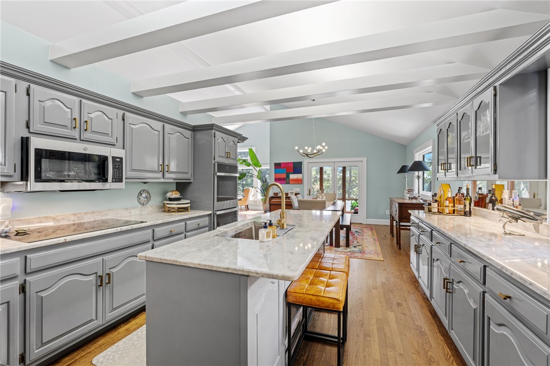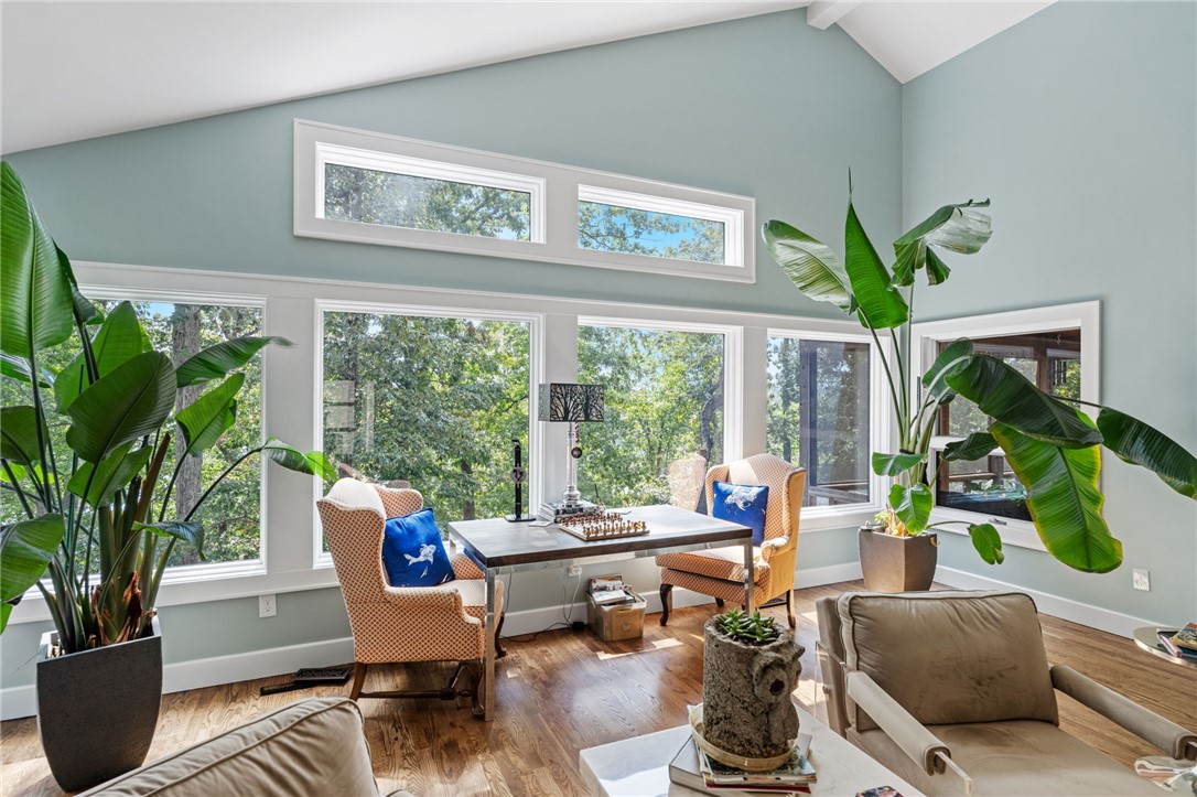 Lake Hartwell waterfront home with DEEP water at all times and over 200 feet of water frontage! 111 Mohawk Lane has nearly 3000 square feet of living space and has been beautifully updated with modern touches. Upon entering the home, you will find an expansive great room with vaulted ceilings, stone fireplace with built-ins on either side, and large windows overlooking the lake. The updated kitchen features marble countertops, induction cooktop, double wall ovens, and beamed ceiling. The dining area leads out to a screened porch on the lake side of the home. Across the great room, you'll find a large bedroom with a spacious adjoining bathroom. The lower level has a large recreation room leading out to a covered deck. There are additional bedrooms on this level, one of which is a duplicate of the main level bedroom. The third bedroom has a walk-in closet and beautiful wet room bathroom with a free standing tub and console style vanity. Additional features of the home include hardwood floors throughout all rooms except bathrooms, multiple pocket doors, attached 2 car garage, grass & paver patio area, and a putting green. This home is located the gated Chickasaw Point community. Amenities include: 18 hole golf course, Olympic sized swimming pool, tennis & pickleball courts, walking trail, community library and garden, playground, dog park, restaurant and more. For more information on Chickasaw Point, please visit their website at https://www.chickasawpoint.com/