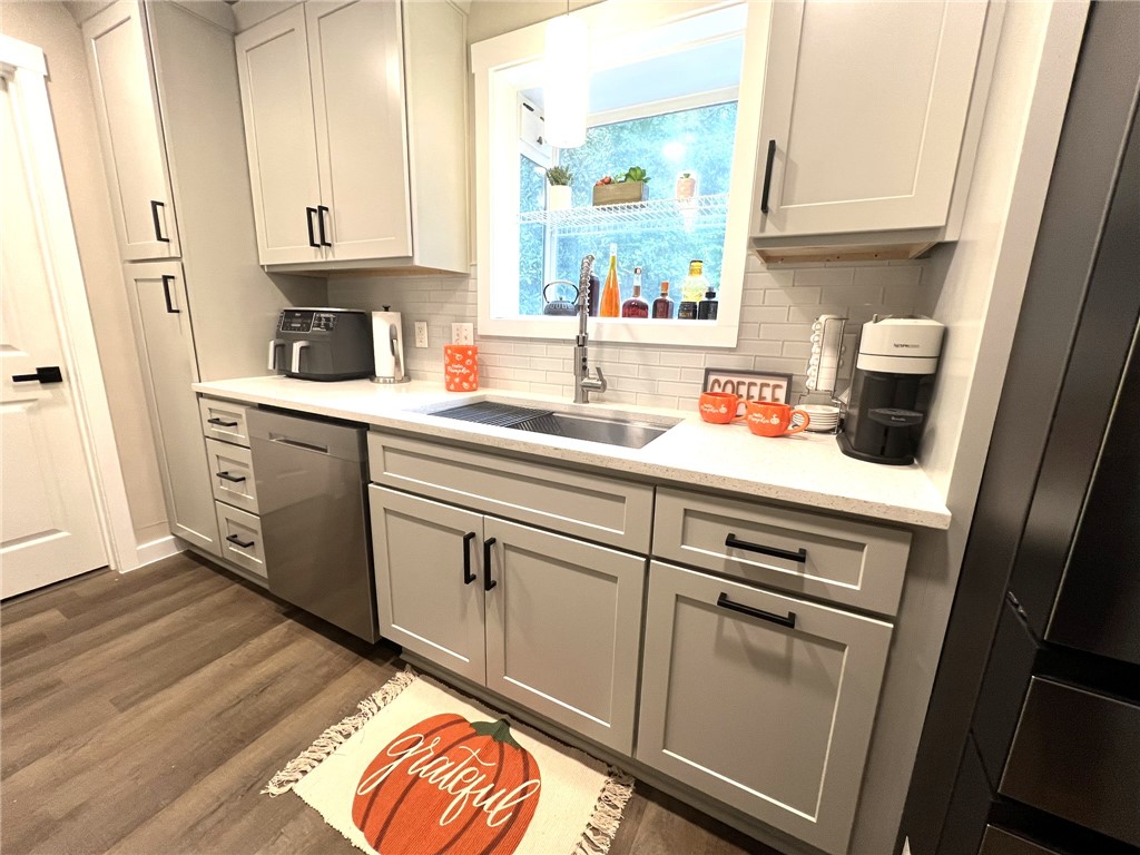 NEW PRICE!! Welcome to this beautifully remodeled 3 bedroom/2 bathroom PLUS basement-level Flex space home with 2000 SF. This home is located right off Wade Hampton Boulevard, providing convenient access to shopping and restaurants but is nestled on a PRIVATE, QUIET lot with creek and mature trees. The rocking chair front porch welcomes as you enter the living room with bay window where you will love the open floor plan with new flooring throughout. This space transitions smoothly into the dining room and gorgeous new kitchen with sleek light gray cabinets, gleaming quartz countertops, gas range and garden window for your fresh herbs. The great room features a corner gas fireplace and large windows offering a panoramic view overlooking your private backyard with fire pit, just right for roasting marshmallows on cool fall evenings. Sliding doors exit out to the oversized, multi-tiered deck, great for entertaining. The primary suite has a walk-in closet and stunning new, modern bathroom with tiled shower. The split-bedroom floor plan has two additional bedrooms and an updated hall bath. On the basement level you will find a 2-car garage AND an additional 1-car garage, complete with gas wall heater, making this a perfect workshop or even additional garage space for that boat, golf cart or UTV. And the best surpriseā¦a 22x17 FLEX Room with windows, 2 closets and a brand new mini-split HVAC. Need a 4th bedroom? You got it! Need a home gym or office? You got it! This home has many updates, including all new PEX plumbing lines. The only thing missing from this fabulous home is YOU!