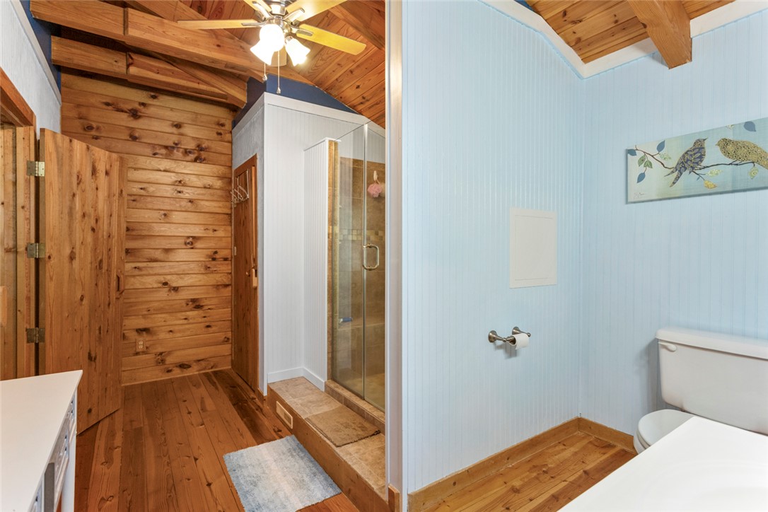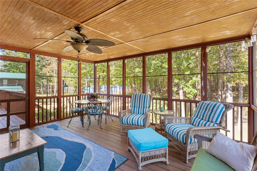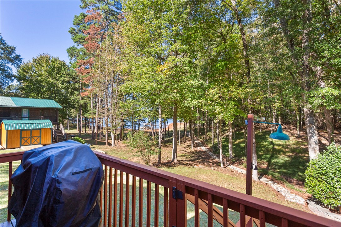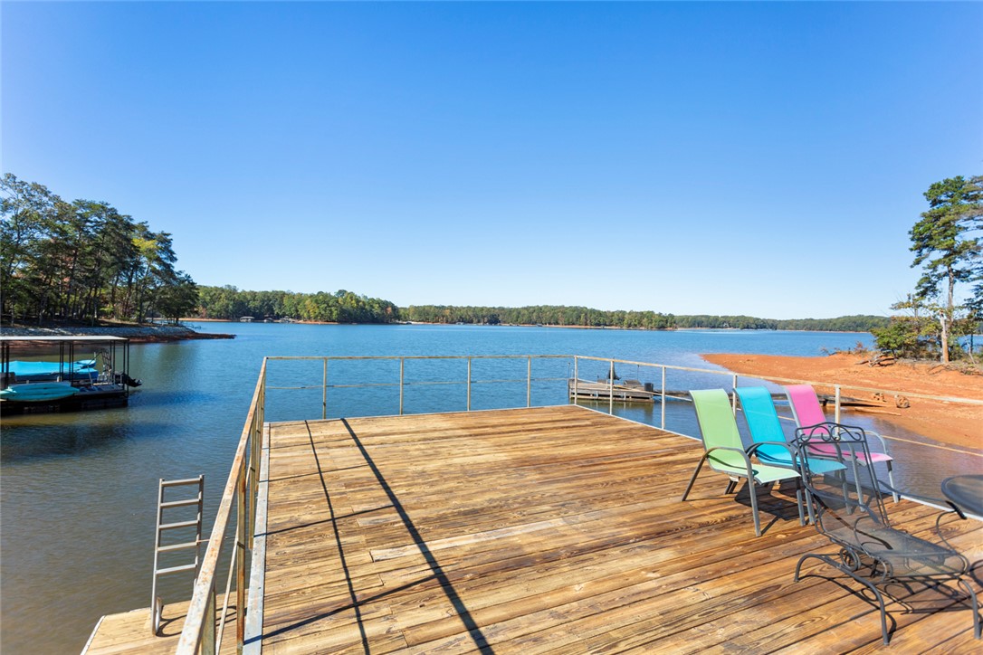 If you have dreamed of a cabin by the lake, this home offers a beautiful setting with stunning sunset views. The covered front porch leads to a spacious living room, kitchen, and dining area, ideal for entertaining. A main-level bedroom and full bath provide flexibility for multi-generational living or use as a vacation rental. Open stairs lead to the second level, which features two bedrooms, a full bath, and an open balcony overlooking the main living area. The terrace level offers additional living space, including a bedroom, full bath, flex room or office, and a laundry area with direct access from the lakeside. The screened porch and deck provide excellent views of Lake Hartwell, with sunsets, passing boats, and occasional deer sightings. A single-car garage at street level and an additional garage below offer ample storage for lake equipment, a workshop, or a golf cart. The property includes a double-decker dock with a single boat slip, facing southwest and connected by a permanent path to the lake. Short-term rentals are permitted, there is no HOA fee, and the quiet street enhances its appeal as a getaway, full-time residence, or investment property. The home is being sold furnished for a seamless transition. Just 10 minutes off I-85 at SC Exit 1, the home is minutes to Harbor Light Marina by Boat or Jet Ski, The Marina has Fuel Service, Boat Rentals, Courtesy Dock, and a Walkup Restaurant. New Windows, Wood Flooring throughout, Energy Efficient Split Units, and More.