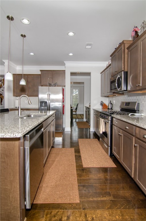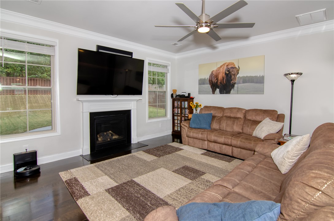 Welcome to your dream home – where elegance meets everyday comfort! This stunning 5-bedroom, 3-bath home offers a perfect blend of sophistication, functionality, and thoughtful upgrades throughout. Step inside to a welcoming foyer with elegant trim work that sets the tone for this exceptional home. To your left, the formal dining room flows seamlessly through a butler’s pantry with added cabinets and countertops into the gourmet kitchen, featuring granite countertops, stainless steel appliances, cabinet slides in lower cabinets, and a cozy breakfast area. The open-concept living room boasts a gas-log fireplace and is perfect for gatherings or quiet evenings at home. The main floor also features a flexible bedroom or office, a full bath, and a delightful Harry Potter nook under the stairs. A spacious mudroom off the garage adds everyday convenience and storage. Upstairs, you’ll find three additional bedrooms and an oversized owner’s retreat complete with a sitting area, massive walk-in closet, and a spa-inspired ensuite with dual vanities, soaking tub, and walk-in shower. The laundry room includes added cabinets, countertops, and extra workspace for functionality and style. Step outside to your private backyard oasis — featuring an enlarged covered patio, extended concrete with a new sidewalk from patio to the front, and a 4x6 storage shed for outdoor organization. The fenced yard offers lush green space, a walk-around pathway, and plenty of room to entertain or unwind. The garage has been upgraded with epoxy floor sealer, added shelving unit, four separate 20-amp outlets, and a Rachio 3 smart sprinkler controller for effortless lawn care. Additional upgrades include quiet DC motor ceiling fans, an enlarged entrance closet, cabinet slides in kitchen, and more — every detail thoughtfully designed for comfort, convenience, and efficiency. Meticulously maintained and move-in ready — this home truly stands out! Don’t miss your opportunity to make 158 Rivermill Place your dream home. Schedule your private showing today, we have no doubt you will fall in love!