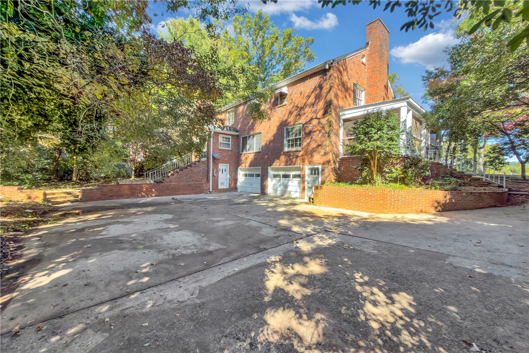 Step into classic elegance with this brick Georgian Colonial nestled in the highly sought-after historic Northside Neighborhood of Easley. This stately residence offers a rare opportunity to restore and personalize a home rich in character and architectural charm. Original hardwood floors flow throughout the main living areas, with the first level already sanded providing a blank canvas for the new owner to stain to their taste. The home showcases enduring craftsmanship with wooden cornices over beveled glass windows, a grand woodburning/gas log fireplace, and arched entries that speak to its historic charm. This 3200 sf beauty boasts five bedrooms, with owners' suites on both the first and second floors (one with an exterior entrance), three tiled bathrooms and a cabinet-rich kitchen. The formal living and dining rooms offer plenty of space for entertainment and family gatherings with an overflow option on to the generously sized screened-in side porch. The foyer has a unique low riser staircase, making it a breeze to navigate. There is also a flex space that can be used as an office, playroom, spare bedroom - the options are endless! Outside, the stately front porch is framed by two classic columns, offering a warm welcome and curb appeal. The driveway leads to a rear-entry two-car garage located in the basement, which also includes 676 square feet of unfinished storage space, with more in the floored stand-up attic. It's rare to find such an abundance of closets and built-in storage space in homes of this era. It also has a beautiful deeply wooded backyard with plenty of parking. This home is waiting for someone with vision and who appreciates its original classic beauty and is ready to bring it back to life. Don't miss the chance to own a piece of Easley's architectural heritage in one of its most desirable neighborhoods.
