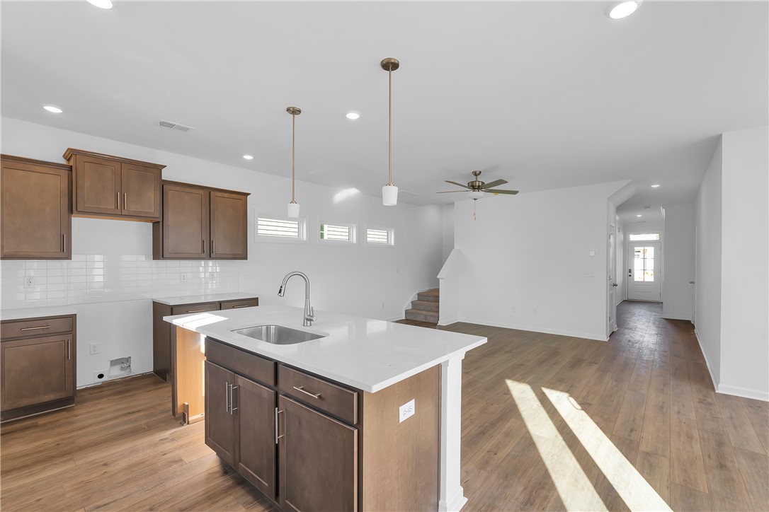 Brownstone Park is a friendly neighborhood of quality, style and convenience. Close to downtown Easley's shopping, Night life & Restaurants. You and your family will enjoy taking evening strolls & invigorating, brisk morning walks on sidewalks throughout the community. Great Southern homes this beautiful Glenwood II A in Brownstone Park featuring the Primary suite downstairs that includes a walk in shower, double vanity, walk in closet. The kitchen has the upgraded island, granite countertops, SS appliances with an open floor plan into the great room and separate dining room. laundry on main living. Upstairs features 2 additional bedrooms and shared bath.