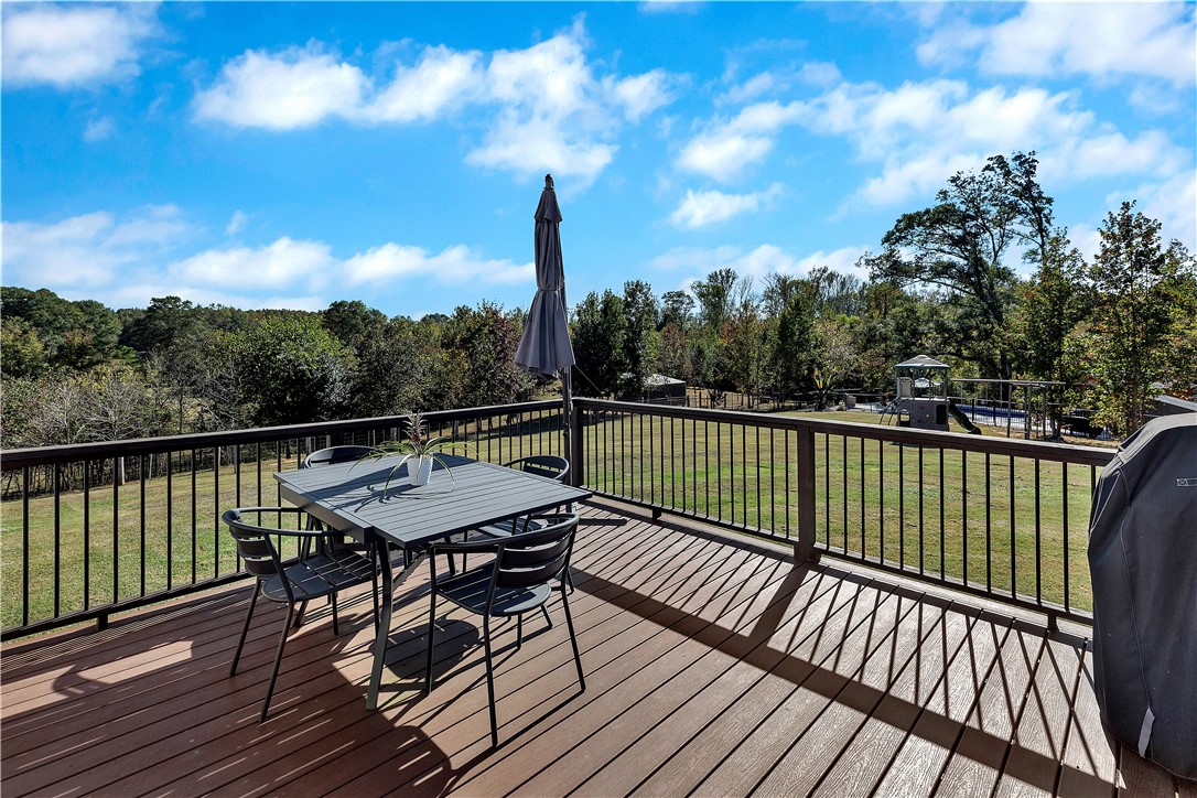 There’s a peaceful feeling the moment you pass through the gated drive at 924 Norris Road. Set on over 31 acres of rolling pasture, mature woods, and wide open Carolina sky, this modern farmhouse retreat offers the freedom of acreage living with the convenience of Anderson and Lake Hartwell just minutes away. A wide front porch sets the tone, the perfect place to sip your morning coffee and watch the sun rise over your own fields, with quiet countryside stretching out in front of you. Inside the main home, you’ll find just over 1,900 sq ft of bright, thoughtfully designed living space. Large windows and an open, easy flow layout create a warm, inviting atmosphere. The kitchen is a true standout, anchored by a large custom island and finished with granite countertops, two separate ovens, stainless appliances, and an impressive 5 foot wide built in Whirlpool refrigerator and freezer that conveys. It’s a functional, elevated centerpiece for everyday living and entertaining. The primary suite sits privately on one side of the home and features a beautifully designed bathroom with a huge spa style walk in shower, double sink vanity, and a generous walk in closet. On the opposite side, two additional bedrooms and a full bath complete the main home layout, offering a comfortable, thoughtful split floorplan. Just steps away, the property includes a separate 550 sq ft office or in law suite, perfect for guests, multigenerational living, a dedicated workspace, or a studio. This flexible area includes its own living space, full bathroom, full kitchen, and an attached two car garage, giving you privacy and functionality that is hard to find. Outside, the land truly takes center stage. More than 31 acres of open pasture and mature woods offer endless possibilities including horses, cattle, gardening, hunting, riding trails, homesteading, or simply embracing the peace and space that acreage provides. A beautiful stretch of Generostee Creek runs along the property, adding a serene natural backdrop and a quiet place to explore or unwind. A standout outdoor feature is the brand new fenced in fiberglass saltwater pool, complete with a gazebo, a private retreat perfect for cooling off, relaxing, or entertaining. For farm, livestock, or equipment needs, the property includes a 68 foot by 55 foot barn with roll up doors and two 14 foot by 55 foot lean tos for hay, equipment, or storage. Beyond the barn, there is a separately fenced pasture with a stable, ideal for horses, goats, cattle, or any animals you want nearby and easily managed. Built in 2022 with modern finishes and thoughtful upgrades, this property blends the ease of a newer home with the space and potential of true acreage living. It is the rare kind of place where you can spread out, breathe deeper, and build the lifestyle you have been dreaming of.