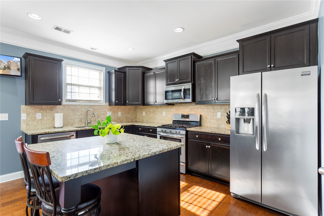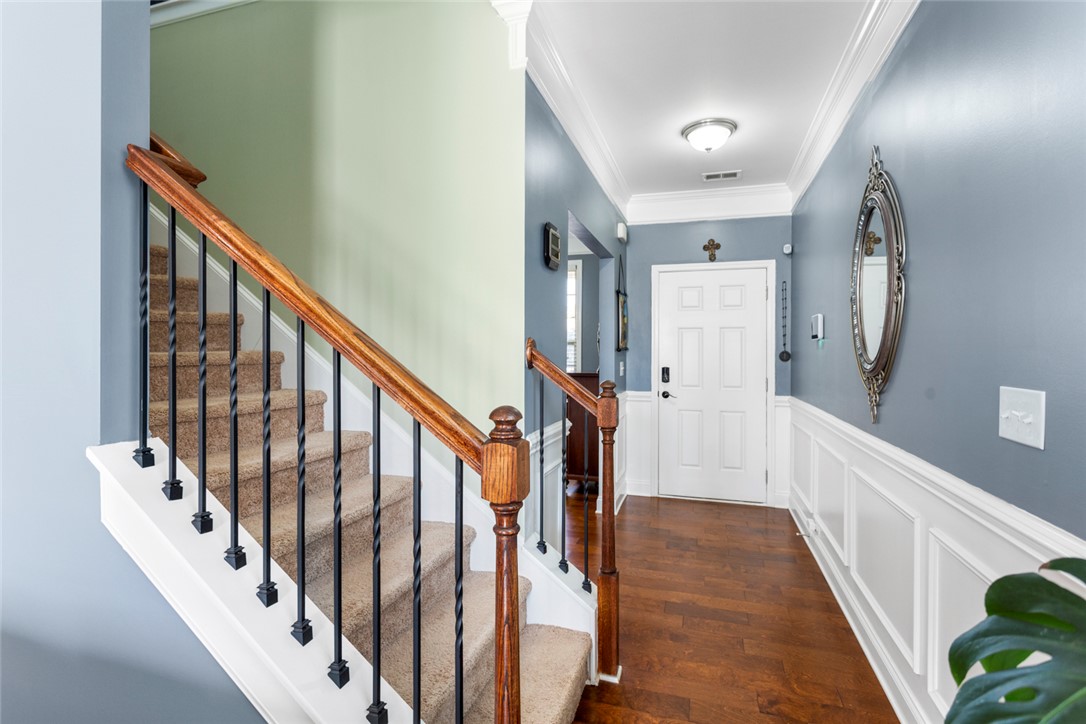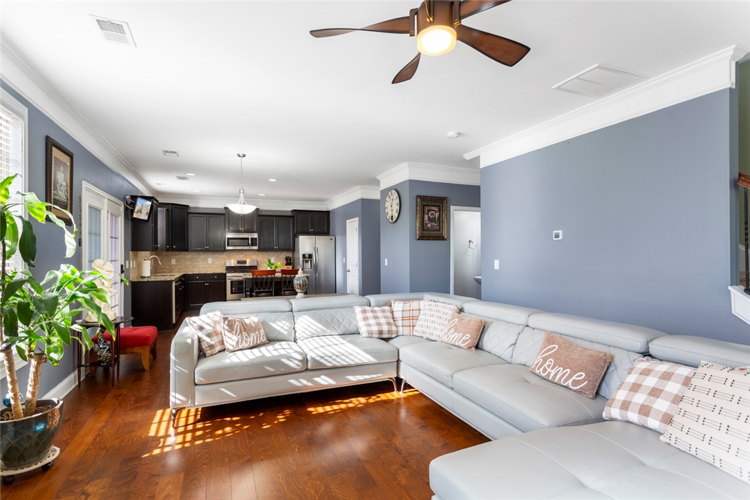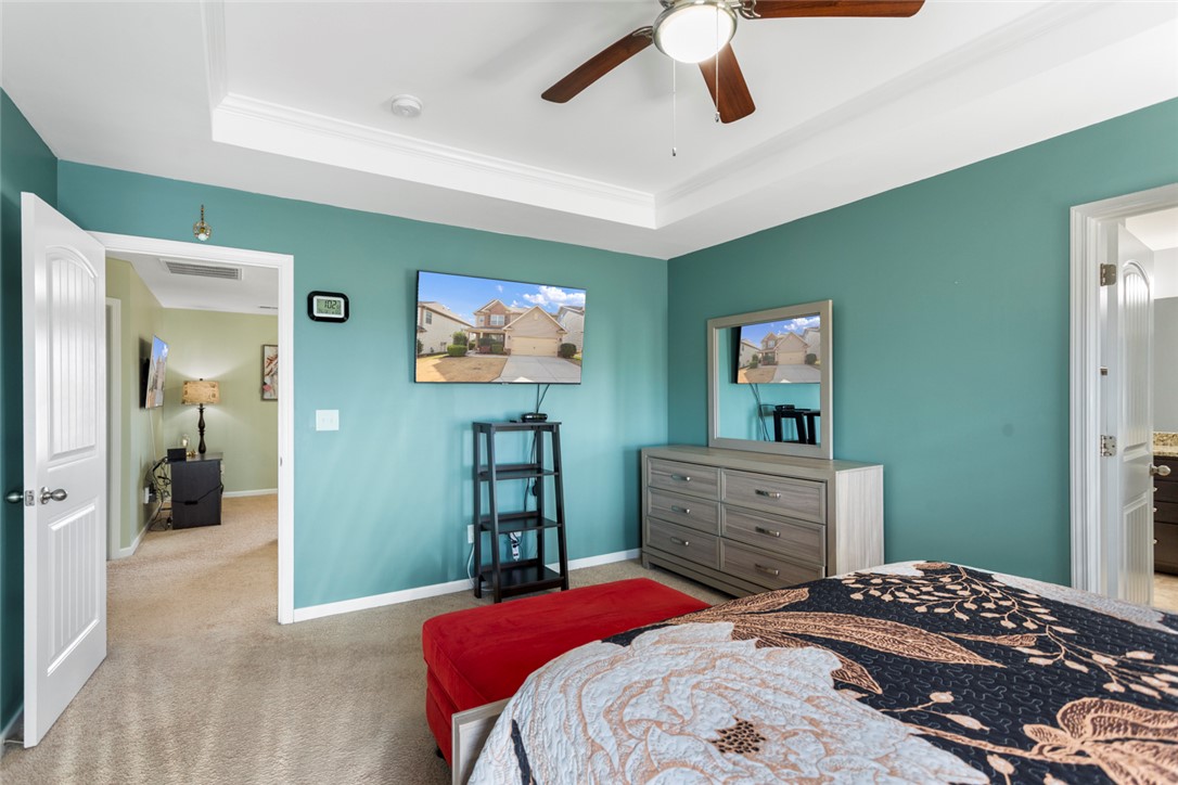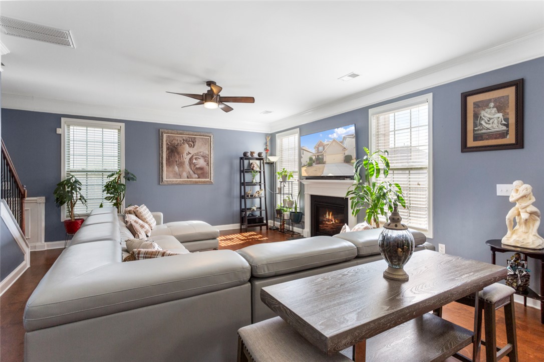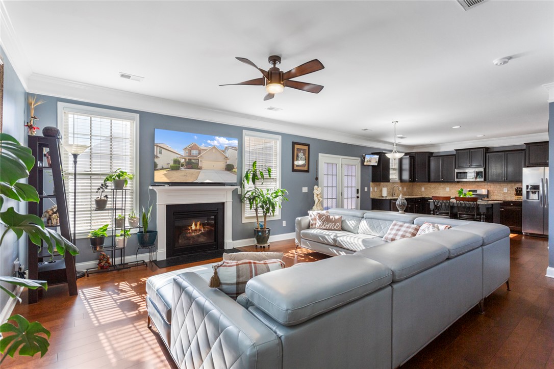 This 3-bedroom, 2.5-bath home blends comfort, function, and style from the moment you arrive. A spacious covered front porch leads you into a warm, inviting foyer with gleaming 5" hardwood floors and detailed molding. The formal dining room sits just off the entry, and the great room offers an easy space to gather, highlighted by a beautiful gas fireplace. The kitchen is both stylish and practical with staggered cabinetry, stainless steel appliances, and granite countertops. There is a all weather room with Eze-Breeze windows. Epoxy floor in garage with 8 years left of warranty. Yard has irrigation system (front and back). Beautiful Upstairs, you’ll find a roomy loft/media space along with a lovely owner’s suite featuring a trey ceiling, walk-in shower. Two additional bedrooms offer generous space and great closets. Located in Longleaf community—with sidewalk-lined streets and community pool—this home is just minutes from Fairview Road and Downtown Greenville. Excellent location!! Security/camera system to remain with home.