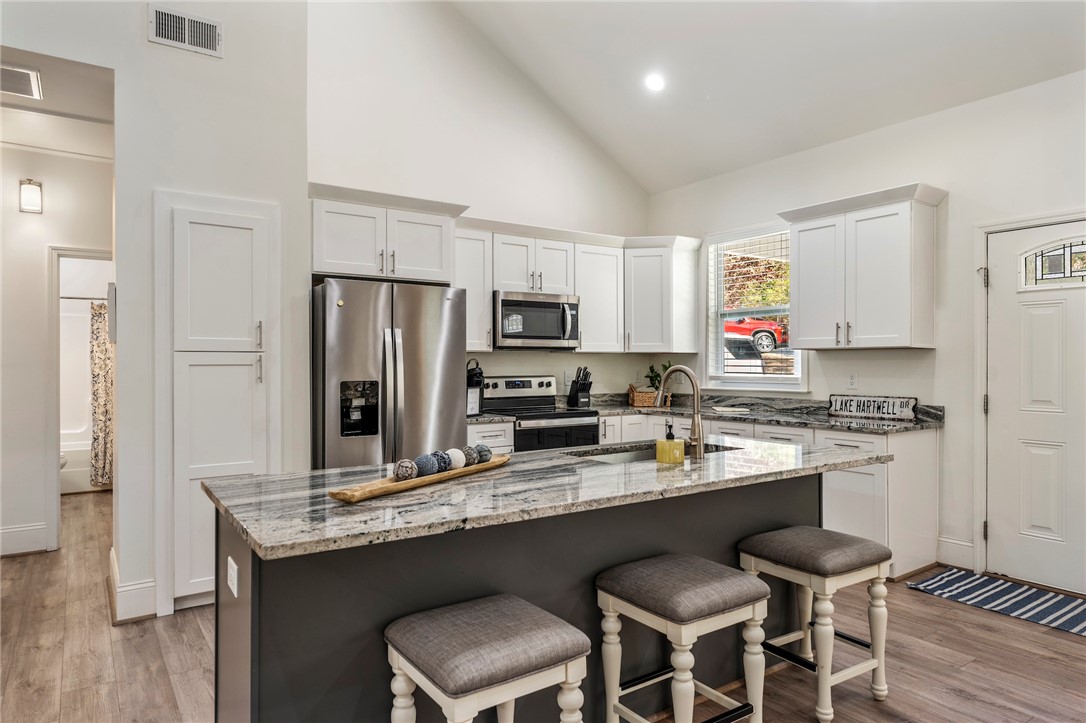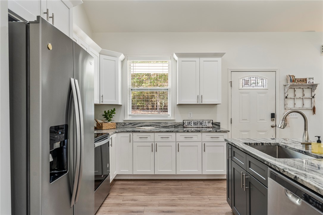 Enjoy modern comfort and effortless lake living in this fully furnished, beautifully maintained Lake Hartwell home—only 3 years old and enhanced with a gorgeous sunroom added in 2023. Set on a spacious .76-acre lot with a gentle slope to the water, this turnkey property offers privacy, convenience, and year-round enjoyment. Inside, the open-concept layout is bright and inviting, featuring comfortable furnishings and plenty of room for gathering. The stunning sunroom—wrapped in windows and filled with natural light—creates the perfect place to relax, entertain, or take in serene lake views in any season. Outside, the property continues to impress with a generous yard and an easy walk to the shoreline. A covered dock in place on deep water, featuring all-new wood, provides dependable access even during lower lake levels—ideal for boating, fishing, swimming, and enjoying the best of Lake Hartwell. Conveniently located less than 2 miles off of interstate 85, you'll have easy access to Anderson, Atlanta, and Greenville, and Clemson University is less than 30 minutes away. Whether you're looking for a full-time residence, weekend retreat, or investment property, this modern, move-in-ready home checks all the boxes for a perfect lake getaway.