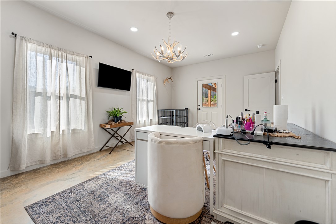 Discover a rare opportunity to own a custom Craftsman-style barndominium on 10 unrestricted acres, offering privacy, versatility, and refined country living. This stunning residence features 5 bedrooms, 3.5 baths, and an open-concept design that seamlessly blends rustic charm with modern sophistication. The heart of the home is an expansive living, dining, and kitchen area, anchored by a gas-log fireplace and enhanced by roll-up garage doors for effortless indoor-outdoor entertaining. The split floor plan ensures ultimate privacy, with a luxurious primary suite boasting an oversized walk-in closet and a spa-inspired bath complete with double vanities, soaking tub, and a dual-head walk-in shower. A laundry room with a utility sink and ample storage space, as well as a private office with exterior entrance add convenience and flexibility. The opposite wing offers four spacious bedrooms, each connected by Jack-and-Jill baths, ideal for family or guests. Additional highlights include: Three-bay attached garage, including oversized door for boat or camper storage. Expansive covered front porch and rear porch with wood-burning fireplace for cozy evenings. Durable concrete flooring throughout, with vinyl in bathrooms for easy care. Close proximity to Stamp Creek Landing on Lake Keowee to enjoy boating, fishing and swimming. Dining, shopping, and medical facilities is a short drive away. This property is more than a home—it’s a lifestyle. Whether you’re seeking a private retreat, a family compound, or an entertainer’s paradise, 411 Sweetwater Club Drive delivers unmatched flexibility and charm.