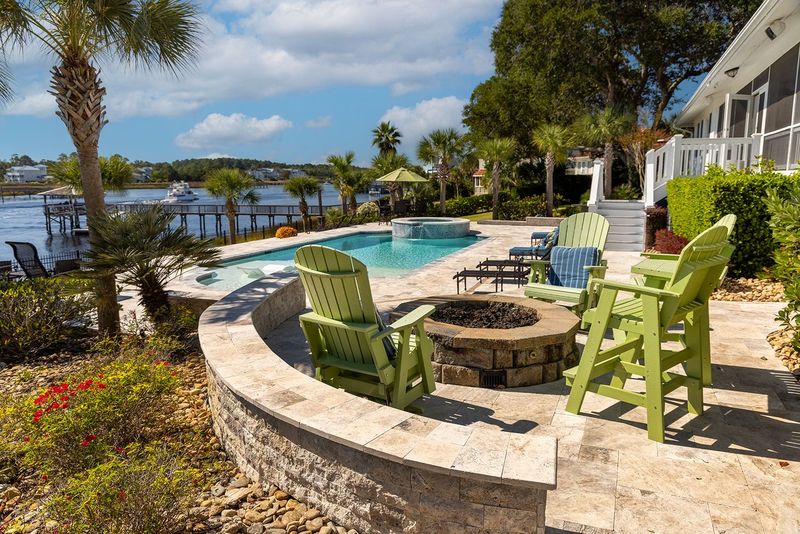This stunning waterfront estate elevates coastal living to an unparalleled level, offering direct Intracoastal Waterway access in the heart of the charming seaside town of Little River, South Carolina. Located in the secluded Eastport community, this exceptional property spans approximately 2.17 acres of meticulously manicured grounds and boasts nearly 210 feet of pristine waterfront—an exquisite setting for the discerning buyer. Nestled at the end of a private drive, the residence offers approx 3,477 sq. ft. of thoughtfully designed heated living space, blending luxury, privacy, and sophisticated coastal charm. Inside, you’ll find three beautifully appointed bedrooms, each with its own full en-suite bath. The primary suite serves as a true retreat, featuring a spa-inspired bath with a double shower, a luxurious soaking tub, and an elegantly designed walk-in closet. The gourmet kitchen is a chef’s masterpiece, equipped with a Gas Thermador Range, Sub-Zero full refrigerator and freezer, and an expansive scullery complete with a steam oven, second dishwasher, and dedicated ice machine. The adjoining great room includes a refined wet bar with an additional ice maker and wine cooler, creating the ideal space for entertaining. A spacious formal dining area further enhances the home’s exceptional hosting capabilities. Resort-style outdoor living defines the property’s beautifully designed grounds. Enjoy a 20' x 38' heated pool and spa, a fully equipped outdoor kitchen, a charming fire pit perfect for evening gatherings under the stars, and a fenced backyard with aluminum fencing for added appeal. The covered dock includes a 16,000-lb boat lift, jet ski lift, and captivating landscape and dock lighting creating an enchanting ambiance along the waterfront. Distinguished extra features include a whole-house Generac propane generator, encapsulated crawl space, white oak hardwood floors throughout, underground utilities, and a comprehensive irrigation system. The property also offers a two-car attached garage, a detached two-car garage and a separate storage building. Exuding timeless elegance and exceptional craftsmanship, this waterfront estate offers a rare opportunity to enjoy luxurious, secluded coastal lifestyle in the peaceful Eastport community. Truly a fisherman’s and boater’s paradise, this property provides serene waterfront living with direct Intracoastal Waterway access—an ideal retreat for those who cherish life on the water and all if has to offer.
