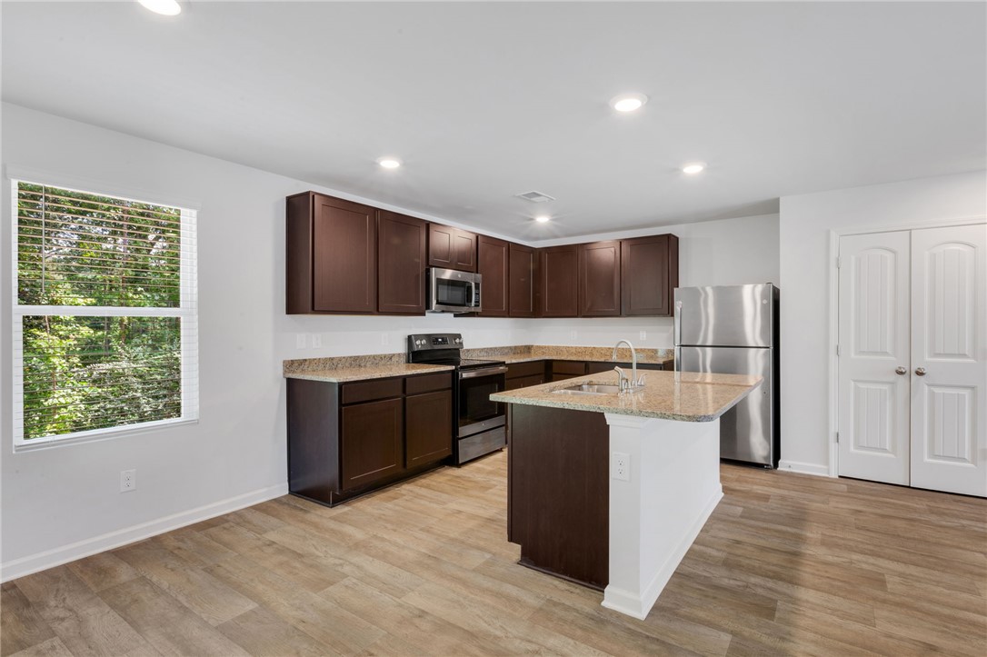 This newly constructed 2023 home is move-in ready and better than new, complete with blinds throughout. Located on a spacious .27-acre lot with no HOA, this property offers the perfect blend of modern comfort and convenience. It's also USDA eligible, providing flexible financing options. Step inside to a bright, open floor plan that is ideal for entertaining. The family room flows seamlessly into the kitchen, which is the heart of the home. The kitchen features a center island with bar seating, granite countertops, and a full suite of stainless steel appliances, including the refrigerator. Just off the kitchen, a convenient mudroom area leads to the two-car garage, perfect for those on the go. The backyard, accessed from the kitchen, provides a private escape. A 10'x12' patio is ready for your grill and patio furniture, while a gentle slope and mature trees offer a blank canvas to create your personal oasis. Upstairs, your LARGE primary suite awaits, complete with a cozy sitting area for a reading nook or relaxation. The suite also boasts a large walk-in closet and a primary bathroom featuring a double vanity and a spacious soaking tub/shower combo. The second floor is completed by three additional bedrooms and a full hall bath. For ultimate convenience, the laundry room is conveniently located upstairs with all the bedrooms. This home is situated in a highly convenient westside location with easy access to I-85, making your commute a breeze. You're just a few minutes from downtown Anderson’s shops, dining, and events. The property is also ideally located near schools, shopping, and dining. The home is also close to schools, including Westside High School and Robert Anderson Middle School. Schedule your tour today and see why this open, inviting home is the perfect fit for your lifestyle.
