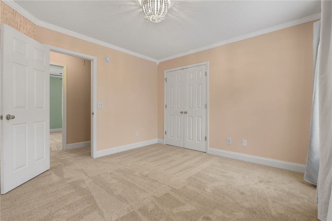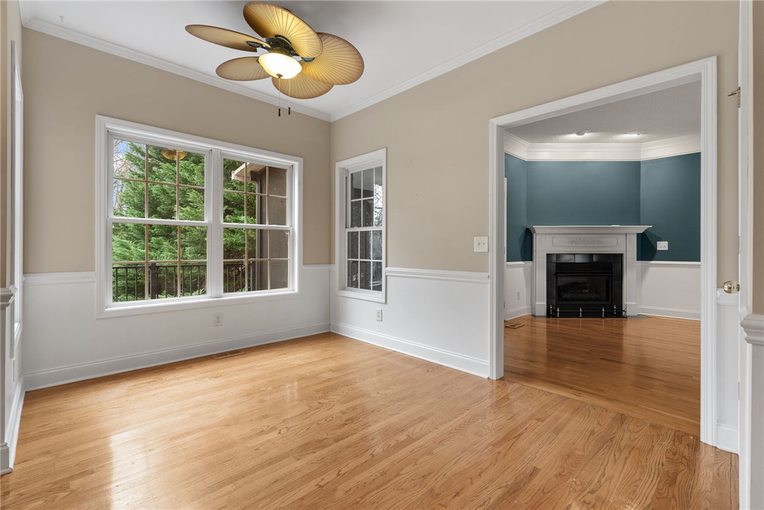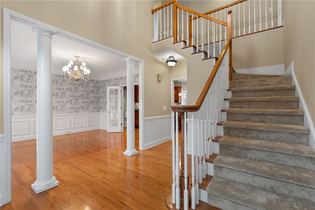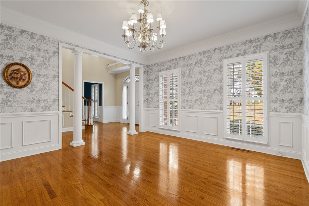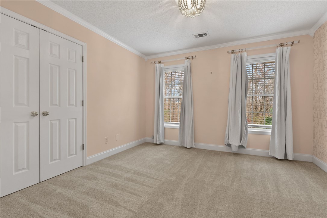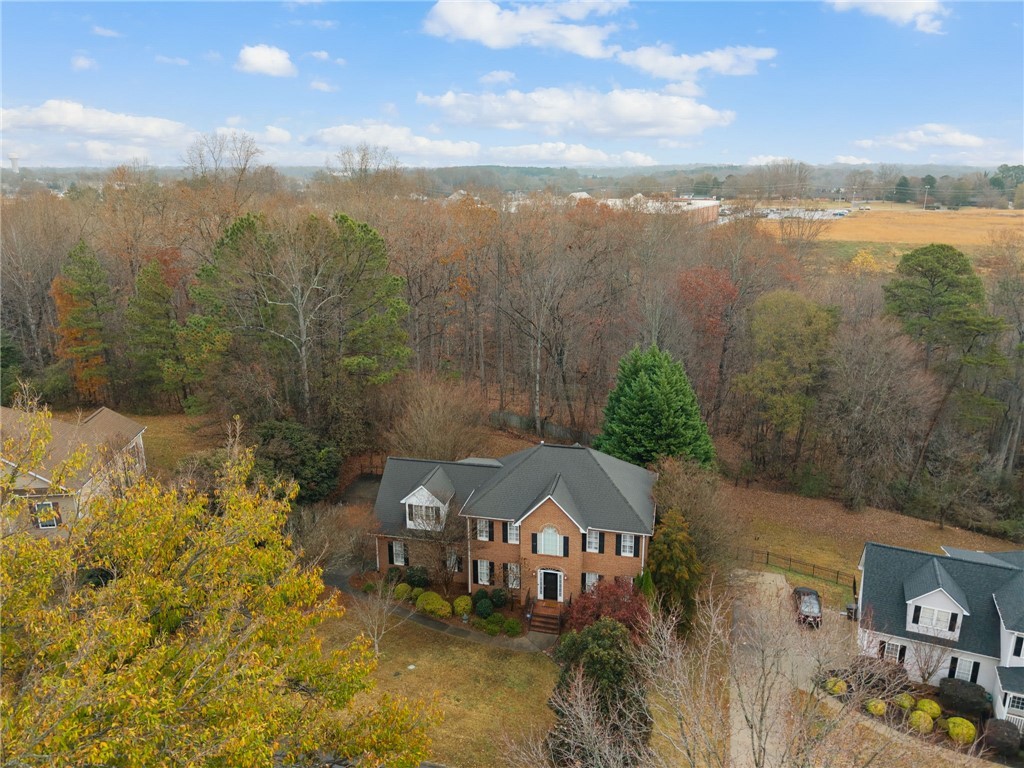 Welcome to this beautiful, brick, two-story home in the desirable Glen Laurel neighborhood. Set on over half an acre and surrounded by mature, seasonal landscaping, this is your perfect next home! Inside, you're greeted by an inviting open two-story foyer that fills the entry with natural light. The main level features oak hardwood floors, plantation shutters, and classic crown molding and chair rails, adding warmth and character throughout. From the main living area, step onto the screened-in porch, perfect for enjoying morning coffee or quiet evenings overlooking the private, wooded backyard, where deer often wander along the tree line. The porch and adjoining deck were thoughtfully added to expand outdoor living, and the unfinished walk-out basement offers excellent storage or the potential to finish additional living space. The home offers a comfortable and flexible layout with 3 bedrooms plus an oversized flex room that can easily serve as a fourth bedroom, office, or game room. All bedrooms are located upstairs and feature brand-new carpet. The primary suite includes dual vanities and a jetted soaking tub, making it a relaxing retreat. Upgrades include a professionally coated garage floor and full ADT wiring throughout. The yard is truly a showpiece, featuring vibrant seasonal landscaping with blue hydrangeas that bloom along the back of the home each spring and summer, pink azaleas, and crepe myrtles lining the driveway. A lovely cherry blossom tree and the fragrant scents of magnolia, gardenia, and jasmine fill the property through the warmer months. There's even a blueberry bush for fresh, homegrown fruit. The Glen Laurel community also offers tennis courts and a pool, rounding out the wonderful amenities that make this home and neighborhood so appealing. Altogether, this home offers a rare blend of comfort, charm, and natural beauty. It's a place where everyday living feels peaceful, convenient, and truly connected to its surroundings. Come take a look, today!