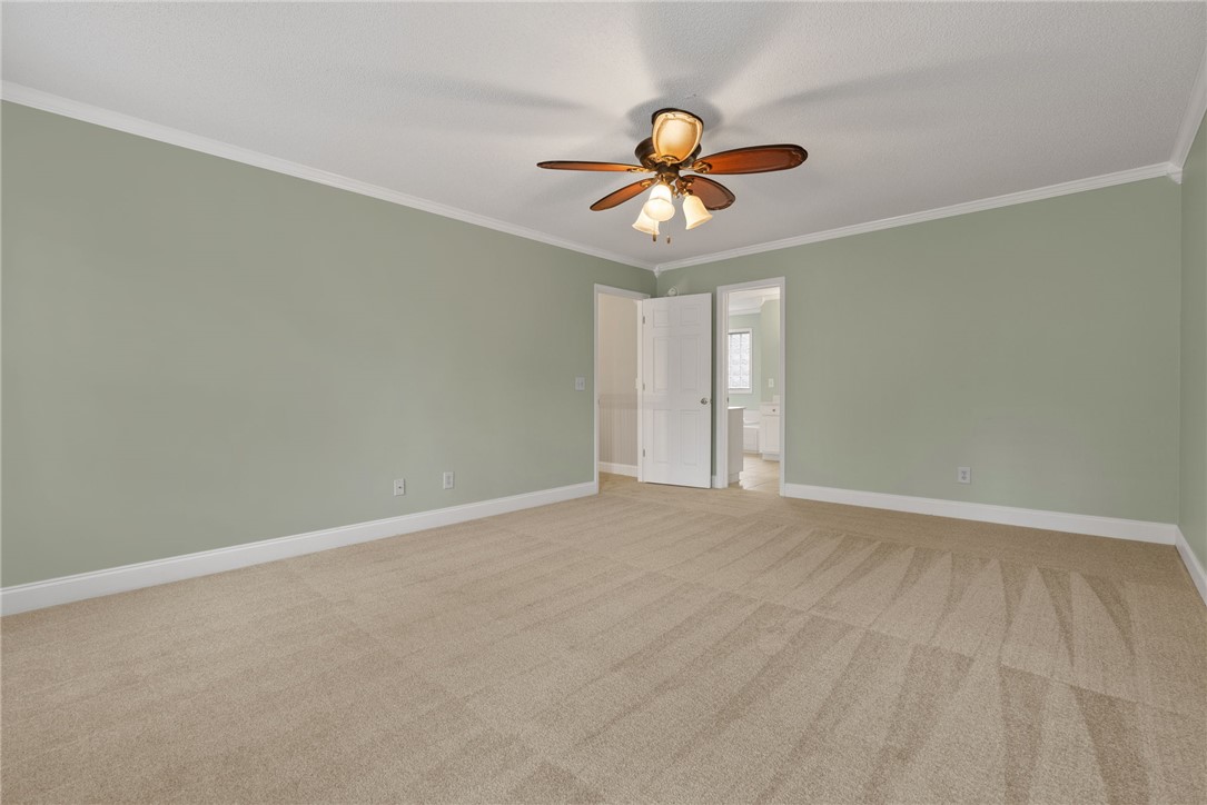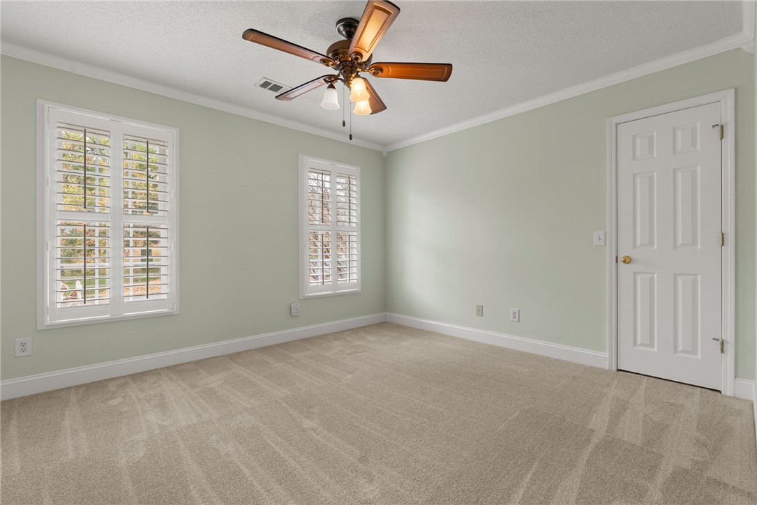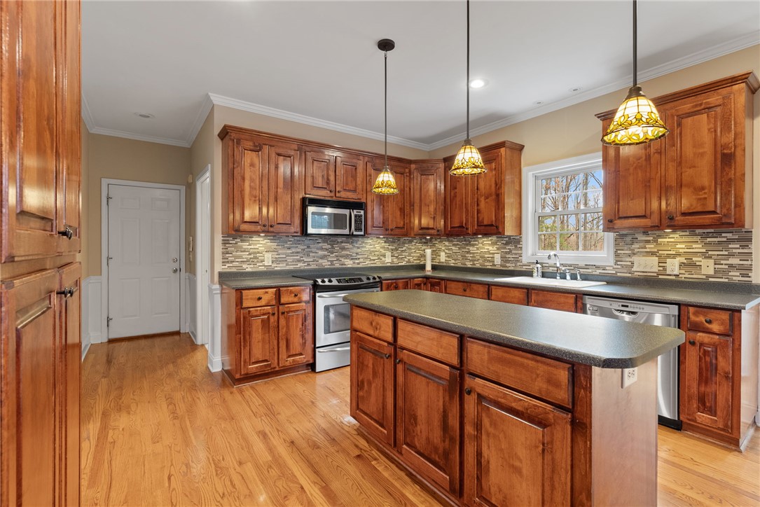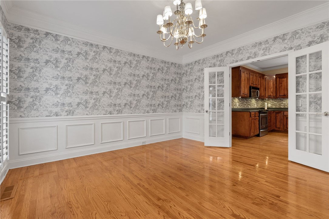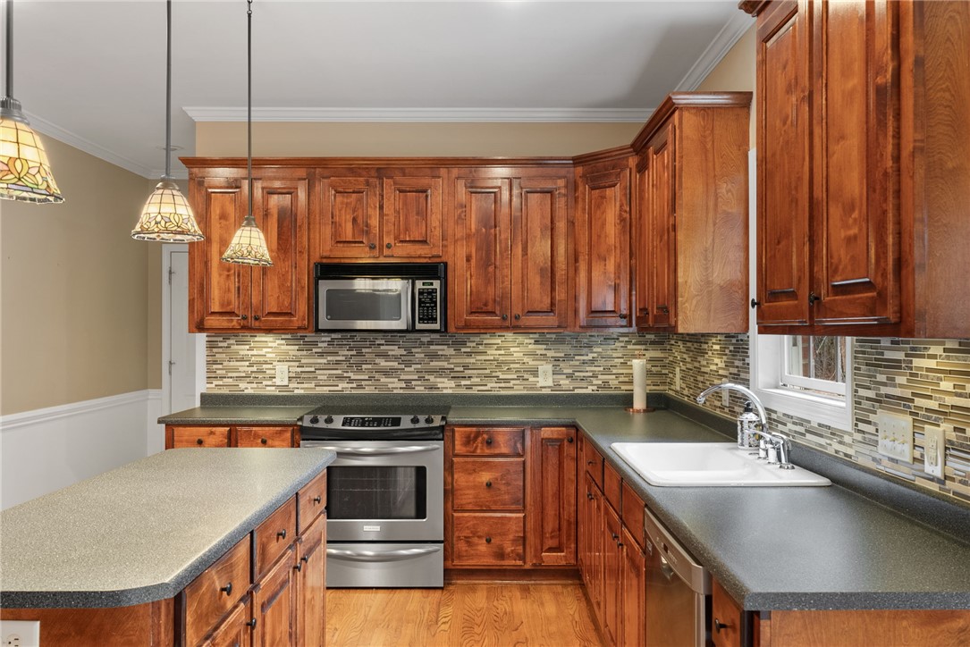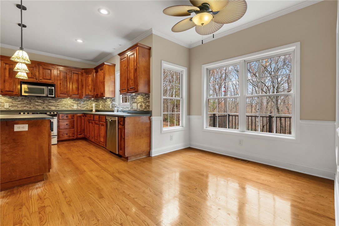 Welcome to this beautiful, brick, two-story home in the desirable Glen Laurel neighborhood. Set on over half an acre and surrounded by mature, seasonal landscaping, this is your perfect next home! Inside, you're greeted by an inviting open two-story foyer that fills the entry with natural light. The main level features oak hardwood floors, plantation shutters, and classic crown molding and chair rails, adding warmth and character throughout. From the main living area, step onto the screened-in porch, perfect for enjoying morning coffee or quiet evenings overlooking the private, wooded backyard, where deer often wander along the tree line. The porch and adjoining deck were thoughtfully added to expand outdoor living, and the unfinished walk-out basement offers excellent storage or the potential to finish additional living space. The home offers a comfortable and flexible layout with 3 bedrooms plus an oversized flex room that can easily serve as a fourth bedroom, office, or game room. All bedrooms are located upstairs and feature brand-new carpet. The primary suite includes dual vanities and a jetted soaking tub, making it a relaxing retreat. Upgrades include a professionally coated garage floor and full ADT wiring throughout. The yard is truly a showpiece, featuring vibrant seasonal landscaping with blue hydrangeas that bloom along the back of the home each spring and summer, pink azaleas, and crepe myrtles lining the driveway. A lovely cherry blossom tree and the fragrant scents of magnolia, gardenia, and jasmine fill the property through the warmer months. There's even a blueberry bush for fresh, homegrown fruit. The Glen Laurel community also offers tennis courts and a pool, rounding out the wonderful amenities that make this home and neighborhood so appealing. Altogether, this home offers a rare blend of comfort, charm, and natural beauty. It's a place where everyday living feels peaceful, convenient, and truly connected to its surroundings. Come take a look, today!
