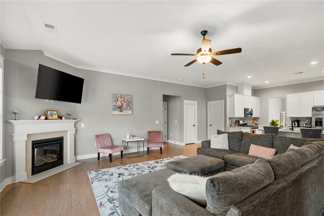 Step inside this beautifully maintained 4-bedroom, 2-bath home located at the end of a quiet cul-de-sac, offering the privacy and space today’s buyers crave. The open floor plan creates a natural flow throughout the home, with generously sized rooms designed for both everyday living and comfortable entertaining. Upon entry, you’re welcomed by a formal dining area that leads seamlessly into a thoughtfully designed kitchen featuring crisp white cabinetry, granite countertops, and a large island overlooking the spacious living room. Vaulted ceilings and wide plank engineered hardwood flooring tie the main living areas together, while the living room is anchored by a gas fireplace with striking herringbone tile. The split floor plan offers two spacious guest bedrooms with a shared bathroom, plus a separate fourth bedroom currently used as a home office. The owner’s suite is privately located at the back of the home and provides a relaxing retreat with tray ceilings, a well-appointed en-suite bath with double vanities, a walk-in tile shower, and an impressive walk-in closet. Step outside to the screened-in porch overlooking the large, level backyard—perfect for morning coffee, evening unwinding, or weekend gatherings. Conveniently located just minutes from Hwy 81, this home offers easy access to shopping, dining, healthcare, and major commuter routes, all while enjoying a peaceful setting that truly feels like home. Comfort, convenience, and room to grow, this one checks all the boxes. Give us a call to schedule your showing today!
