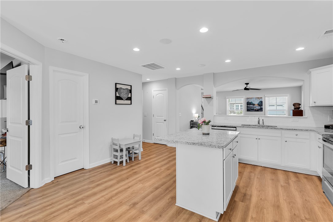 Come tour this Beautiful Craftsman Home nestled in the most private section of "Winterbrook" located in Fountain Inn SC. Only two years old and built by “Great Southern Homes”, the “Buckley” plan features a Primary bedroom on the Main level with two large walk-in closets and the en-suite Primary bathroom has dual sinks plus an xtra wide tiled shower. Luxury vinyl flooring is throughout the main level which includes the large living room with a gas log fireplace, a spacious dining room, a beautifully appointed kitchen with an island, stainless steel appliances, granite countertops, pendant and recessed lighting, staggered cabinets plus a half bath for guests! There’s also a walk-in laundry room and a handy staging area with a bench just off the two car garage. On the second level, there are two spacious bedrooms with a full bathroom between. Each of these 2 bedrooms feature walk-in closets plus there is another finished walk in storage room off the hall for all the extras! Both the front porch and the back patio are covered plus a stained privacy fence was added around the backyard. Some special features from this GreenSmart builder are; a Natural Gas Tankless hot water heater, Radiant Barrier roof sheathing and full yard sprinkler system. Possible USDA eligible and assigned to the new Fountain Inn High School. Ask your Real Estate agent to schedule your tour today!