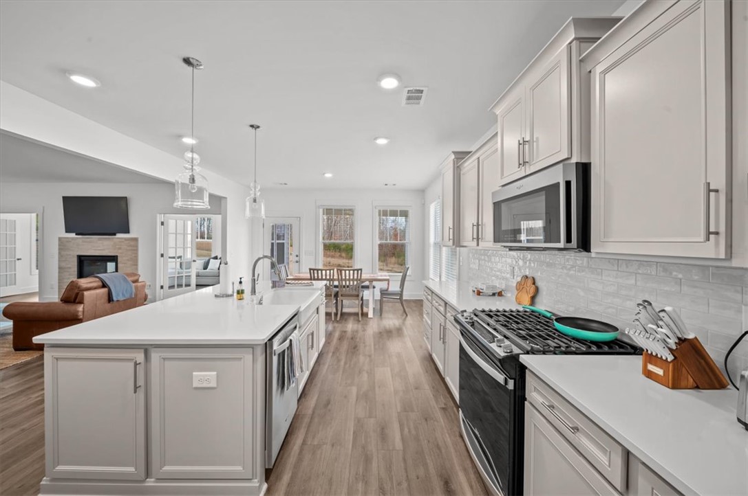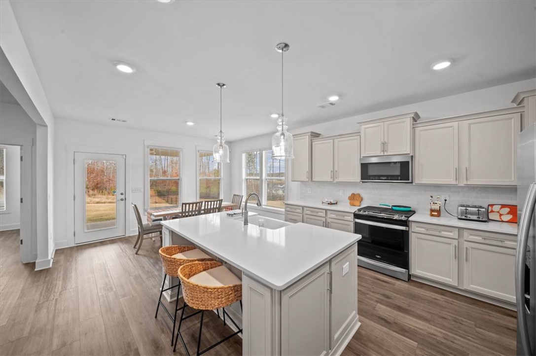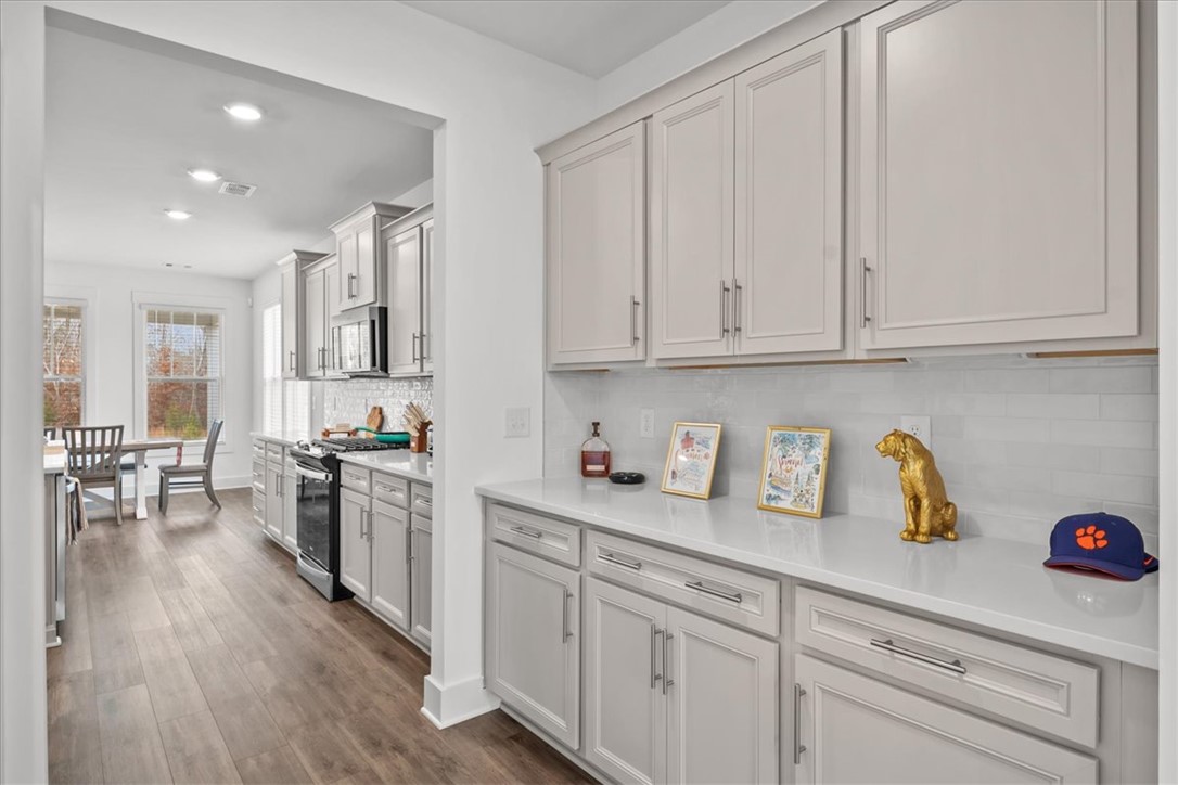 Step into a home that feels nearly new, barely lived in, and thoughtfully arranged for effortless everyday living. Offering over 3,800 sq ft of open, light-filled space, this home features a layout that flows naturally and supports a wide range of lifestyles. The main floor welcomes you with an airy foyer leading into a dedicated den which is an ideal space for an office, playroom, or quiet retreat. This area is situated beside the formal dining room. The bright kitchen and breakfast area open directly into the sunroom, where large windows fill the space with natural light and create a warm, inviting place to relax or gather. A convenient mud room off the garage keeps daily routines organized and out of sight. The main level features generous storage options for everyday convenience. Upstairs, the thoughtful layout continues. The primary suite offers generous space, two walk-in closets, and a comfortable ensuite bath. Bedrooms 3 and 4 share connected bathroom space, creating a practical setup for guests or kids, while another full bath serves the additional upstairs bedroom. There is also a spacious lofted area between the bedrooms. A large upstairs laundry room, positioned near all bedrooms, adds ease to everyday life. Open-to-below features allow light to flow throughout the upper level. Outside, the covered back porch overlooks one of the home’s standout features: a perfectly flat backyard. This rare combination provides endless possibilities. Some possibilities being outdoor dining, a play area, great yard for pets, gardening, or simply enjoying an open, usable yard. All of this sits just minutes from Hwy 123 and Clemson University, with a quick and simple commute to Greenville, Easley, Seneca, and the entire Upstate. If you’re searching for a home that feels fresh, lightly lived in, and designed for easy living in a prime location, this one is a must-see.