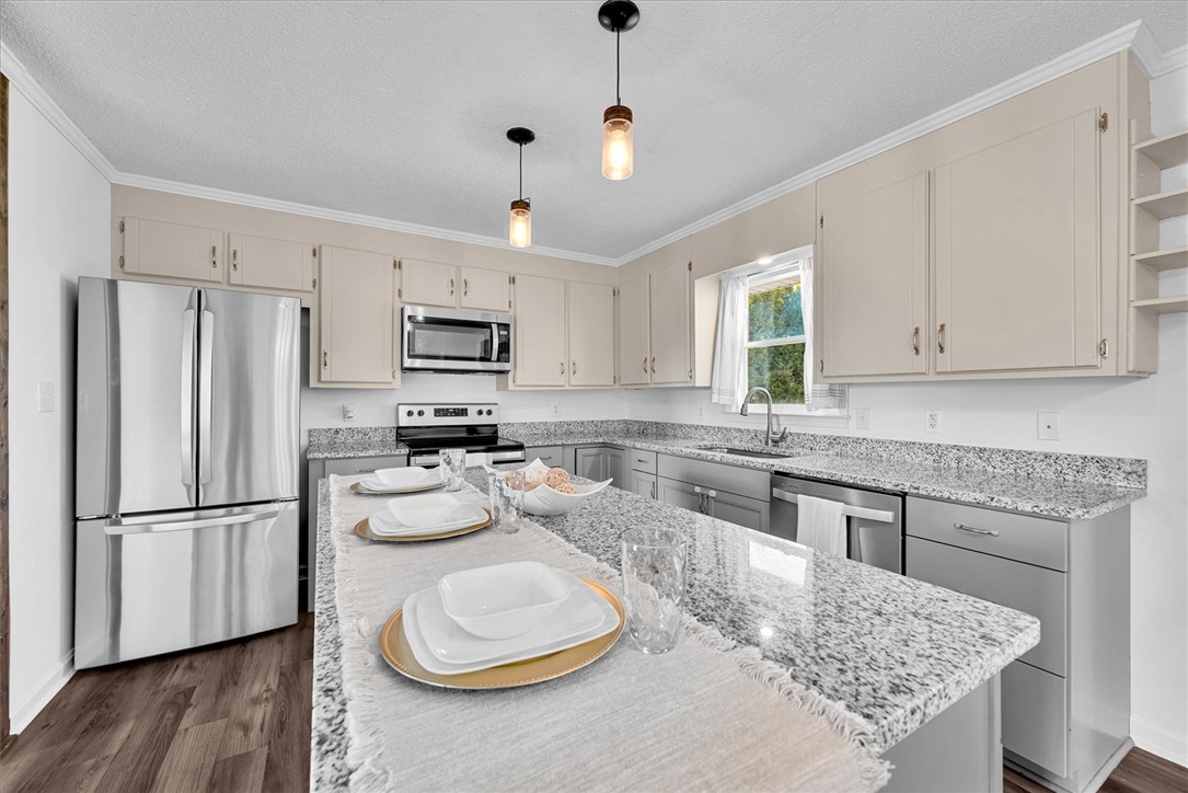 This adorable one-story ranch should be at the top of your list this Christmas! At 730 New Prospect Church Rd. you will find charm and modern updates at every turn. Sitting on a .70 acre lot, this home offers 3 bedrooms and 2 full baths. The open floor plan includes the updated kitchen with granite countertops and stainless steel appliances with an island that has seating and overlooks the living room with the cozy wood-burning fireplace. There is a separate oversized pantry/laundry room off the kitchen for convenience and storage galore. There is an addition to the back of the home that can be so many things depending on your needs. This room can be used as a formal dining room, office, playroom and so much more. In the fully fenced backyard you will find a storage shed for extra storage and plenty of room for your family and pets to enjoy. The three bedrooms are very spacious and both bathrooms have been updated nicely. The home has been freshly painted throughout and there is NO CARPET so all you need to do is bring the dog and toothbrush and enjoy all this home has to offer. The roof was replaced in 2015 and the HVAC is new in 2023. This property also qualifies for 100% financing through USDA. Call to make your appointment today!