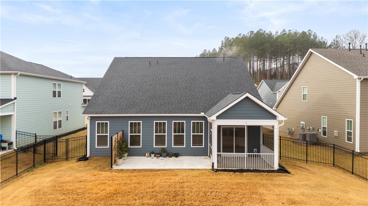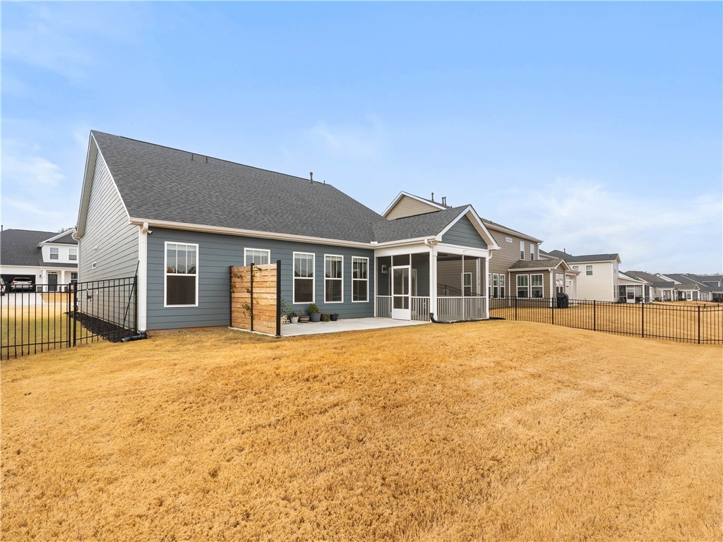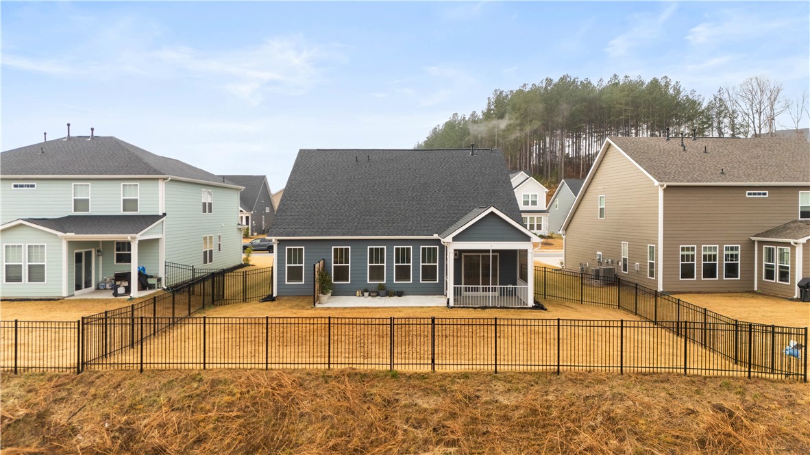 Located less than 15 minutes from Clemson University, this home blends modern elegance with cozy comfort. It features 2 bedrooms, 2 full bathrooms, a bonus room, and an office/study that can easily serve as a third bedroom. Enjoy the open living and dining area, along with thoughtful upgrades such as an expanded concrete patio with a privacy wall, perfect for grilling, plus a fenced backyard and a screened porch ideal for morning coffee. Forget concerns about rear neighbors. With this home you’re backed by quiet, scenic woods. The community sits just around the corner from Patrick Square and Nettles Park and even includes its own wooded walking trail. You’ll love the convenience of being close to everything, including Highway 123, while still feeling tucked away from the bustle of city life.