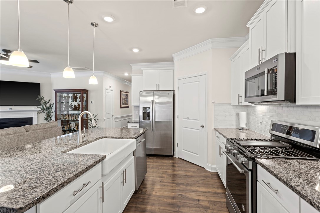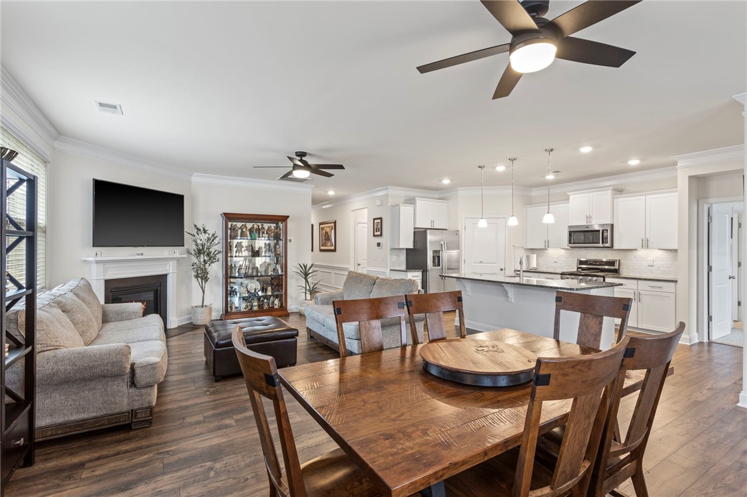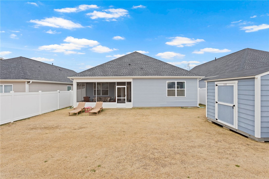Discover the kind of home that instantly feels like comfort the moment you walk through the door. 315 Pollyanna Drive in Greenville, SC offers beautifully maintained, easy one-level living with a layout that makes everyday life feel effortless. The heart of the home is the large open floor plan, where the living, dining, and kitchen spaces come together for gathering, relaxing, and creating memories. The kitchen features a generous island and all appliances remain, making your move-in smooth and stress-free. The primary suite is a true retreat with two spacious walk-in closets and a peaceful atmosphere perfect for unwinding at the end of the day. With three bedrooms and two full bathrooms, there’s room for everyone — or everything — that matters most to you. Step onto the screened porch to enjoy quiet mornings or soft Carolina evenings. The vinyl-fenced backyard and storage building add both privacy and convenience, while the two-car attached garage makes daily routines even easier. What truly sets this home apart is the community around it. Harrington offers amenities designed for connection and enjoyment — a sparkling pool, a large covered picnic pavilion with bathrooms and a fireplace, fire pits, and a playground. It’s the kind of place where neighbors become friends and summer days turn into cherished memories. If you’ve been looking for a place that feels welcoming the moment you arrive, this Greenville gem is ready to greet you. Location of home is eligible for 100% financing with USDA.