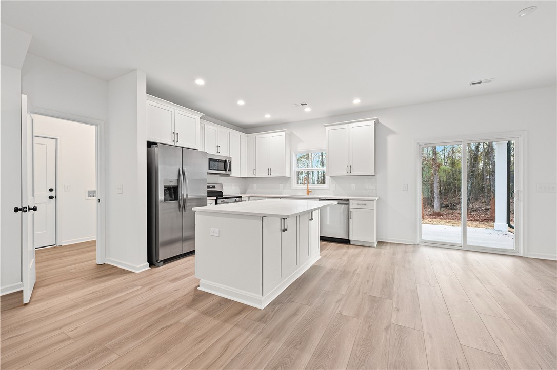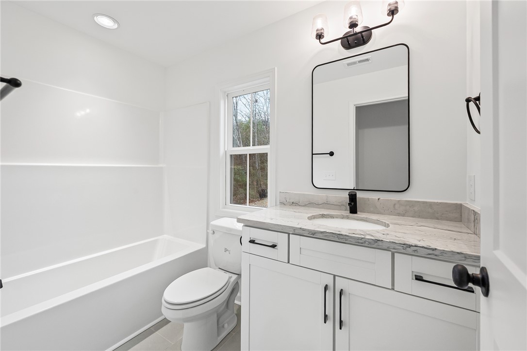 Experience the peace of mind that only comes with a new build! Extraordinary craftsmanship is a hallmark of Oak Valley Construction, and 124 Guest Cr is no exception. A lovely sodded yard and Southern front porch beckon you inside. Open living areas, great for entertianing, include a huge Family Room and eat-in Kitchen. A center island workspace, quartz counters with a subway tile backsplash, and a full bank of stainless appliances create a pleasing and functional space to cook with your family! A guest Half Bath and Laundry finish off the main level. The upper floor is a private oasis for your Bedrooms. The luxurious Owner's Suite showcases plush carpet, a stirring ceiling fan, a walk-in closet, and an exquisite Bath with an extended vanity and step-in shower. Two secondary Bedrooms are spacious and share a well-appointed Bath. Relax in the Carolina breeze on the covered Patio or spend time playing and planting in the backyard. This location is less than 5 minutes to Broadway Lake public docks, so adventure is always at your fingertips. No HOA fee or restrictions! Schedule your private walk through today!