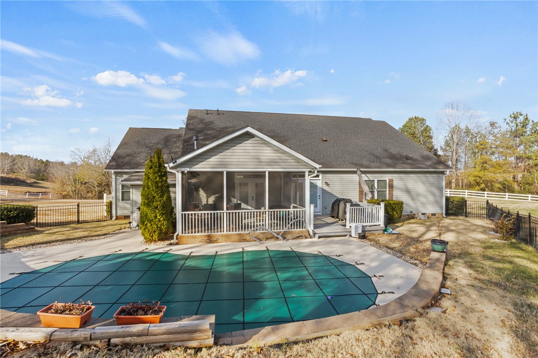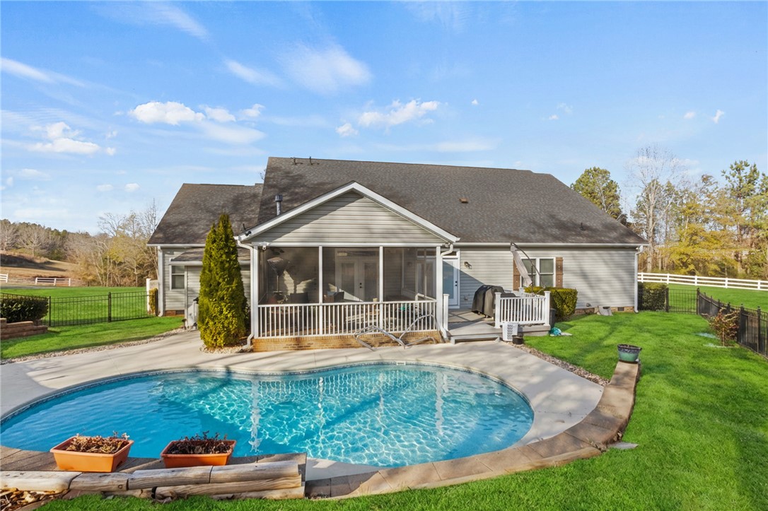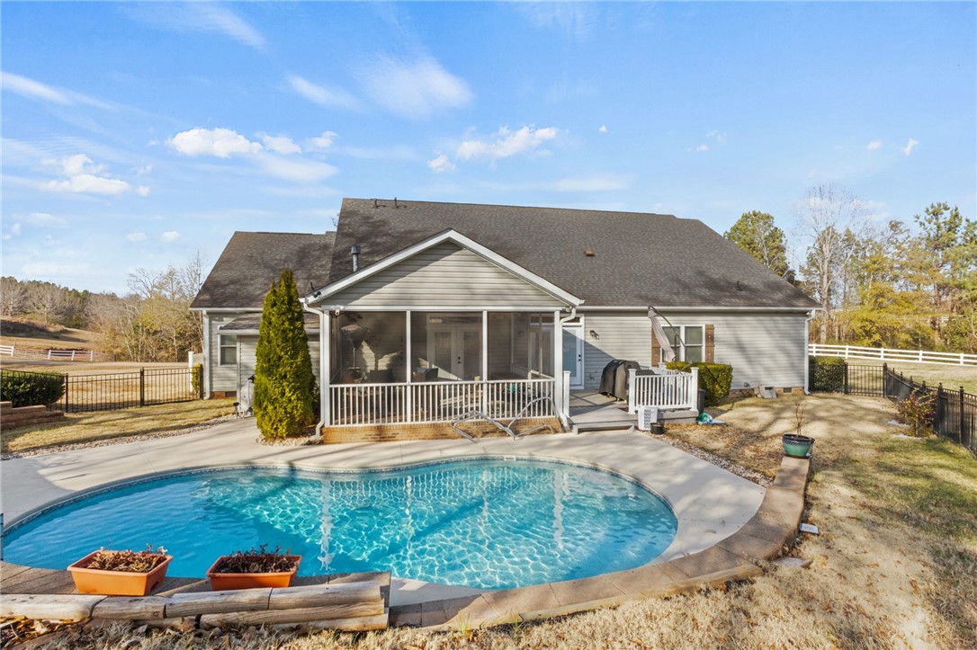 Welcome to 303 Meadowlark Lane—where peaceful country living meets refined comfort just minutes from Lake Keowee. Set on over 2 private acres, this meticulously maintained custom home, built in 2014, offers the perfect blend of relaxation, function, and everyday luxury. Inside, you’re greeted by an inviting open floorplan that flows beautifully from the living area to the spacious kitchen, featuring granite countertops, custom cabinetry, and a large island designed for gathering and entertaining. Interior wall insulation provides enhanced quiet and comfort throughout the home, while the encapsulated crawlspace supports long-term durability and efficiency. The primary suite is its own retreat—complete with a soaking tub, stand-alone shower, dual vanities, and generous walk-in closet space. The split-bedroom layout ensures privacy for family or guests, creating an ideal design for modern living. Step outside to your very own backyard oasis. A recently added inground pool, fenced yard, and screened patio invite you to unwind, entertain, and enjoy the peaceful surroundings. With ample space for hobbies, recreation, or even horses, this property offers the freedom and lifestyle so many buyers are seeking. The oversized garage with an integrated workshop provides excellent storage and work space, adding even more versatility. Residents also enjoy access to wooded community walking trails, perfect for daily strolls or exploring nature at your doorstep. Only a short distance from Lake Keowee, this home offers the rare opportunity to enjoy both country serenity and lake-area convenience—all wrapped into one beautifully cared-for property. Discover the lifestyle, privacy, and quality that truly set this home apart.