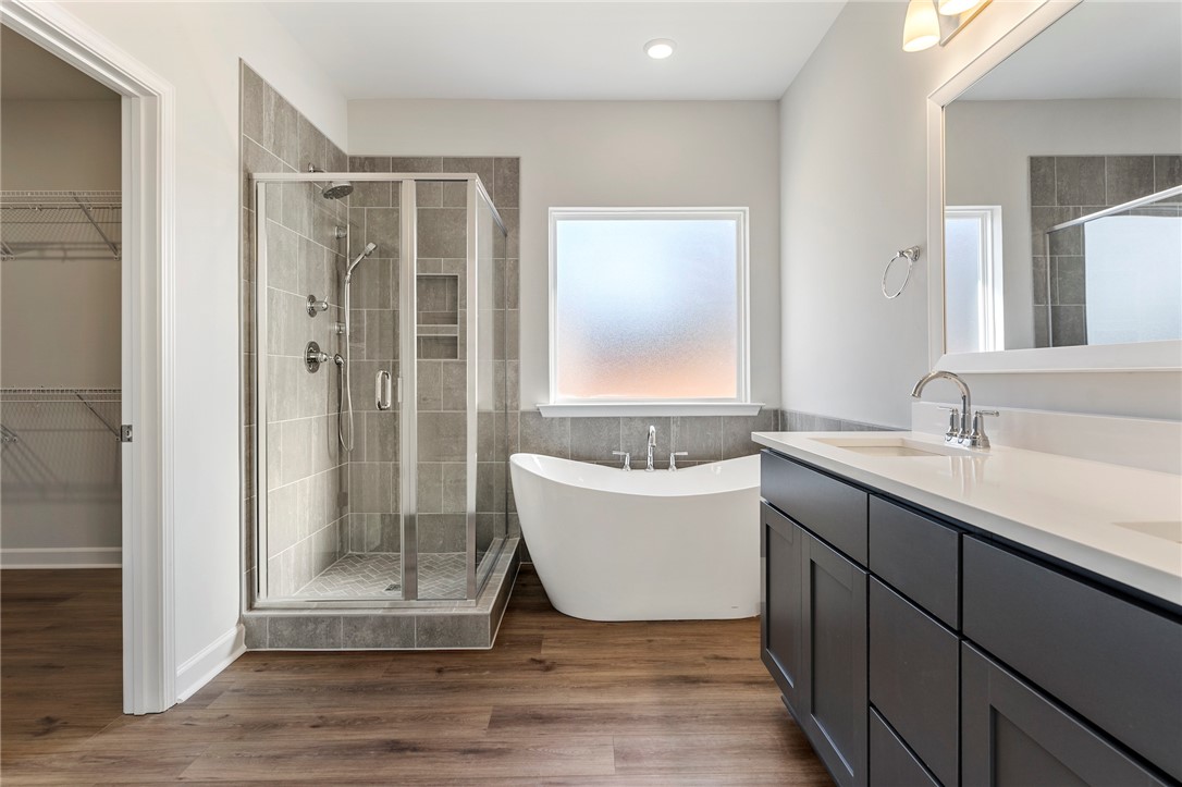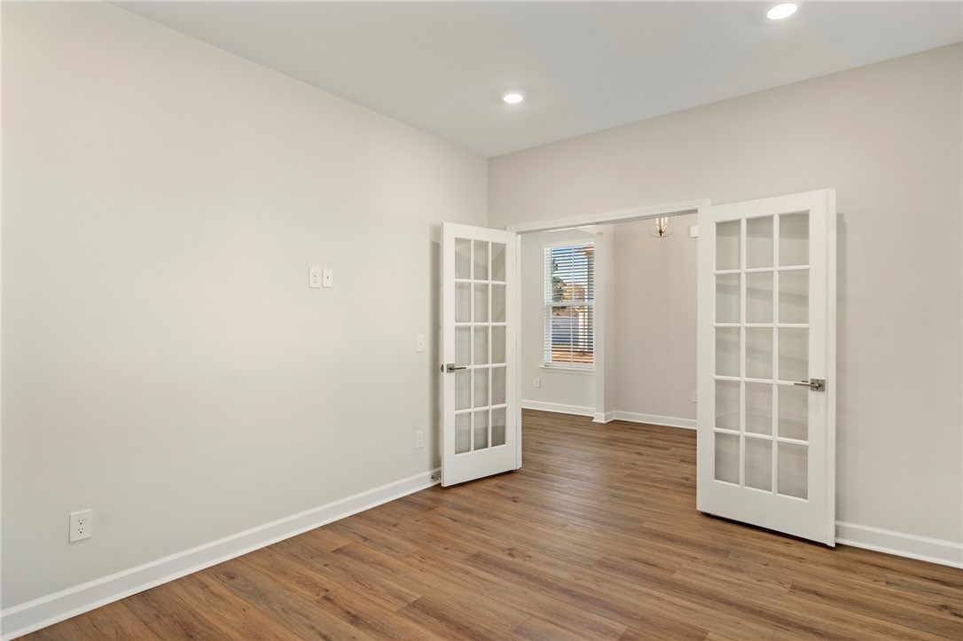 The Cumberland is a one-story home with three bedrooms and two baths. Upon entering the home you are greeted by the open concept great room, eat-in and kitchen. The great room offers a boxed ceiling and ample space for entertainment. The primary suite features a private luxury bath with a separate tile shower and free-standing tub. Behind the kitchen, two secondary bedrooms share a full bath that could also be used for guests. There is also a spacious office with French glass entry doors. To top it all off, this home features a three-car garage!