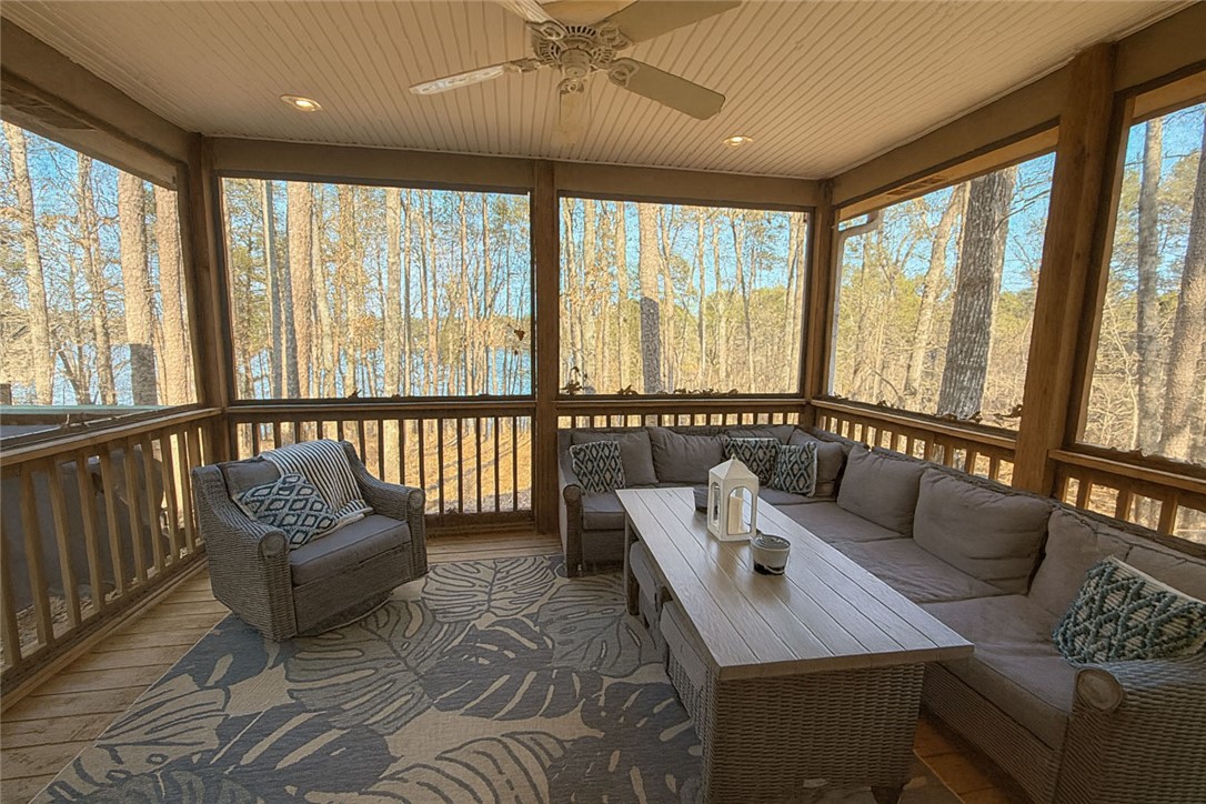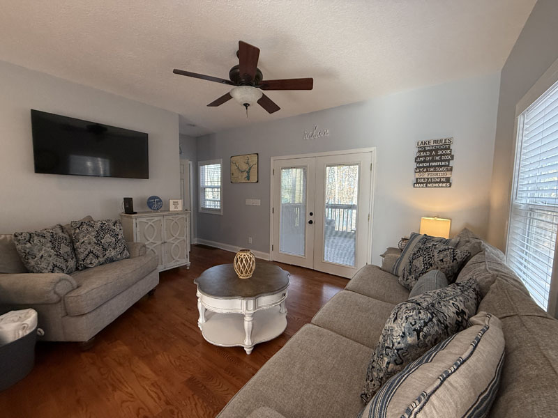 This great Lake Hartwell home is sited on a one acre lot near the Currahee Club. The front porch welcomes you to the great room which is adjacent to the granite kitchen with island and stainless steel appliances and the dining area. This room opens onto a screened porch overlooking the lake and connects to an open grill deck. The owner's suite is on the main level and includes a bath with double vanities and a walk-in closet. This level also has the laundry area and another half bath. Upstairs, there are two bedrooms and a full bath. You will also find a flex area suitable for an office, exercise or additional sleeping. There is a concrete path that leads to the covered slip dock on one of the lake's main channels (Tugaloo).