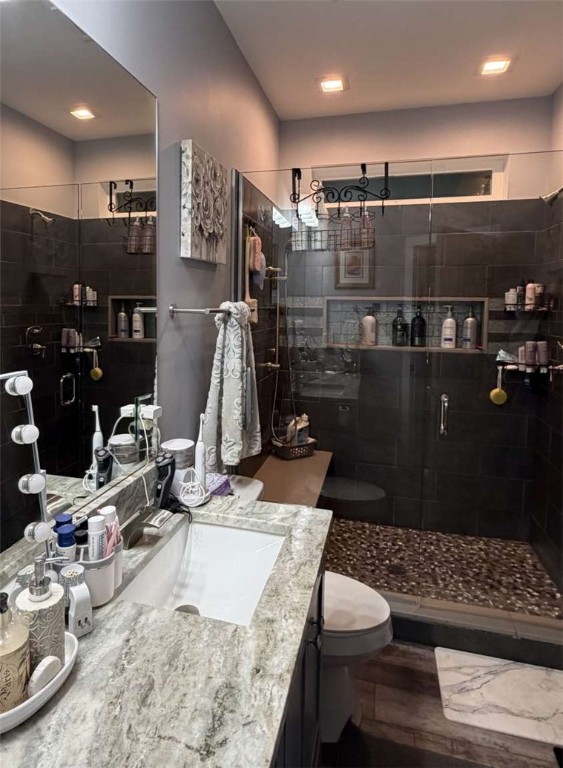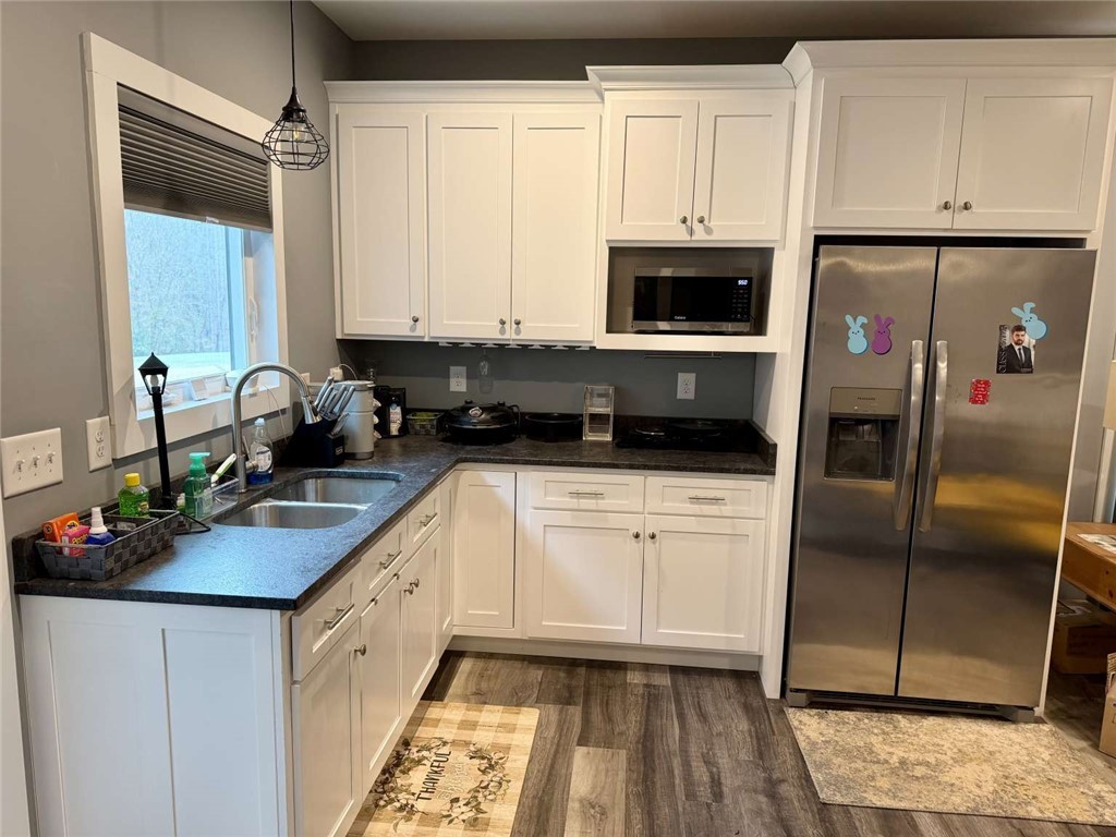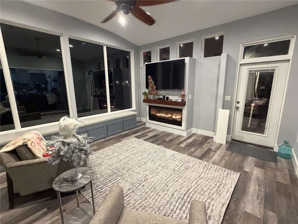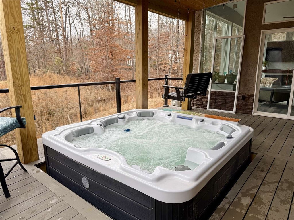 Stunning Contemporary Golf Course Home with Studio Apartment & Optional Boat Slip in Chickasaw Point Enjoy everyday resort-style living in this striking 2020 contemporary home featuring new LVP flooring throughout all bedrooms and stairways, two primary suites, soaring 20' ceilings, and a detached 400 sq ft studio apartment ideal for guests, multi-generational living, or a private office/creative space. Note: Estimated values do not include the new 300 sq ft sunroom addition. The light-filled Great Room offers dramatic volume ceilings, circular kitchen seating with leathered granite, custom entertainment cabinetry, and a matching coffee bar. The recently added adjacent 16' x 18' sunroom showcases floor to ceiling windows with a 12' barrel-vault ceiling, 55” gas fireplace, and beautiful panoramic views of the 15th green, heated and cooled with a new HVAC unit. From here, step onto the new 14’ x 23’ composite deck with cable railing, 6-person hot tub, and porch swing—perfect for private evening relaxation. The main level primary suite includes a huge primary bedroom with custom built-in closet, elegant en-suite bath with glass-door shower, and a nearby laundry plus a half bath. Upstairs, the second primary suite features its own full bath with jetted Jacuzzi tub and elevated golf-course views—ideal for guests, other relatives, or another couple. Across the courtyard, the detached 400 sq ft studio apartment includes a kitchenette, full bath, custom built closet system, and queen size Murphy bed. Its proximity to the main house plus the shared courtyard and fire pit area creates an exceptional multi-generational living setup. A 2-car garage with stairway access to upper-level storage completes the property. Bonus: A rare covered boat slip at the marina is available for separate purchase.