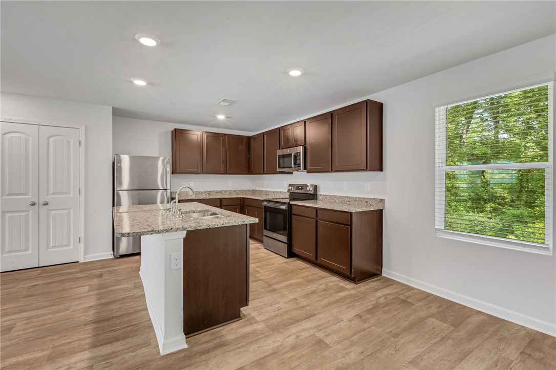 This newly constructed 2023 home is move-in ready and better than new, complete with blinds throughout. Located on a spacious .26-acre lot with no HOA, this property offers the perfect blend of modern comfort and convenience. It's also USDA eligible, providing flexible financing options. Step inside to a bright, open floor plan that is ideal for entertaining. The family room flows seamlessly into the kitchen, which is the heart of the home. The kitchen features a center island with bar seating, granite countertops, and a full suite of stainless steel appliances, including the refrigerator. Just off the kitchen, a convenient mudroom area leads to the two-car garage, perfect for those on the go. The backyard, accessed from the kitchen, provides a private escape. A 10'x12' patio is ready for your grill and patio furniture, while a gentle slope and mature trees offer a blank canvas to create your personal oasis. Upstairs, your LARGE primary suite awaits, complete with a cozy sitting area for a reading nook or relaxation. The suite also boasts a large walk-in closet and a primary bathroom featuring a double vanity and a spacious soaking tub/shower combo. The second floor is completed by three additional bedrooms and a full hall bath. For ultimate convenience, the laundry room is conveniently located upstairs with all the bedrooms. This home is situated in a highly convenient westside location with easy access to I-85, making your commute a breeze. You're just a few minutes from downtown Anderson’s shops, dining, and events. The property is also ideally located near schools, shopping, and dining. The home is also close to schools, including Westside High School and Robert Anderson Middle School. Schedule your tour today and see why this open, inviting home is the perfect fit for your lifestyle.
