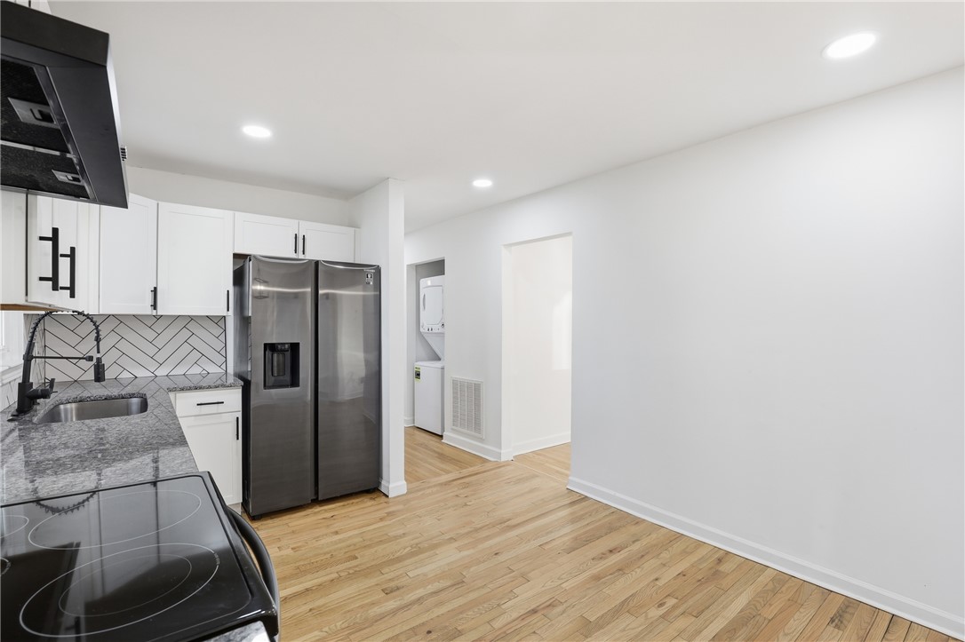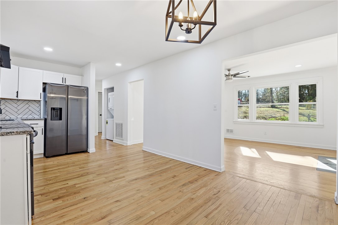 Experience modern living in the heart of Downtown Easley! This beautifully updated 4-bedroom, 2-bath home offers the perfect blend of character, comfort, and convenience—just minutes from Main Street and Calhoun Memorial Highway both full of shopping, dining, entertainment, and The Silos! Recent upgrades enhance both curb appeal and functionality, including a newer two-car concrete driveway and a charming tiled front porch. Step inside to find a thoughtfully renovated interior featuring stained original hardwood floors, a custom stone fireplace, sleek all-black modern hinges and fixtures, and recessed can lighting throughout. The kitchen shines with granite countertops, black stainless steel appliances, and a convenient countertop push-button garbage disposal. The refrigerator and stackable washer & dryer convey, making this home truly move-in ready. The spacious primary suite boasts 9-foot ceilings and a private en-suite bath complete with a rainfall shower head and stylish tile flooring. Additional bedrooms offer flexibility for guests, home office space, or hobbies. Enjoy quiet mornings and relaxed evenings on the newly built elevated deck, overlooking the street and surrounding neighborhood. Below, a colorful tiled patio provides the perfect space for grilling, entertaining, or adding a pergola. The 800+ sq ft basement offers cool, covered storage during warmer months and presents an excellent opportunity to create a finished rec room, gym, or man cave with a little vision. Updated plumbing adds peace of mind. All of this, just 25 minutes from Downtown Greenville, makes this home a rare find for those seeking modern updates, downtown living, and room to grow.