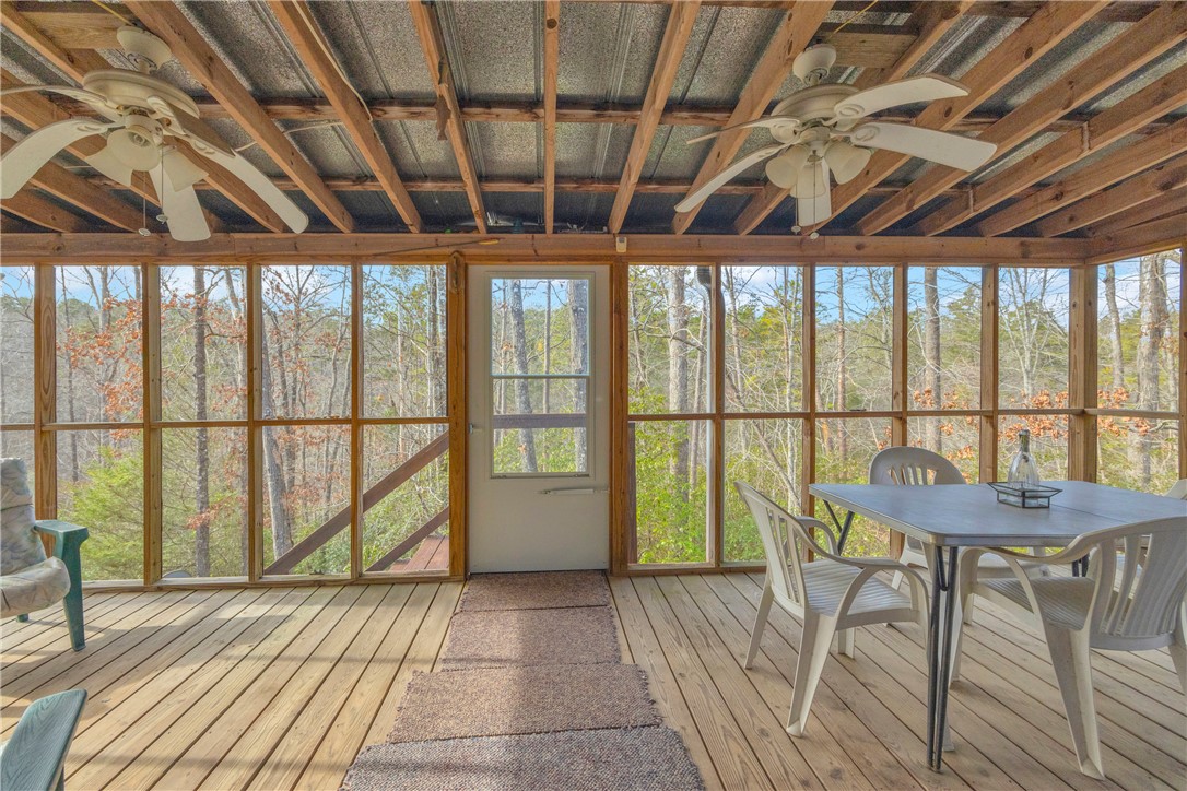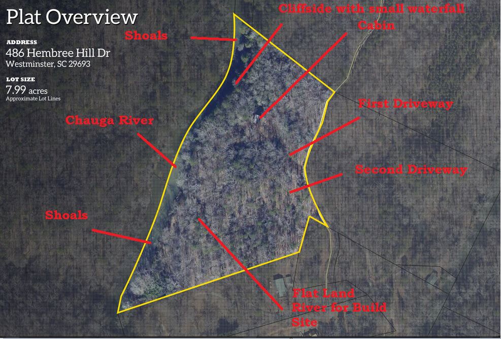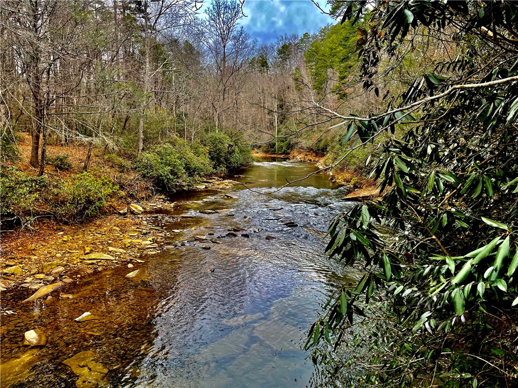 Situated on 7.99 unrestricted acres along the Chauga River, this exceptional property offers over 1,000 feet of river frontage and a rare combination of natural beauty, privacy, and versatility. A charming two-bedroom, one-and-a-half-bath hunting and fishing cabin, completed in 1998, serves as an ideal base camp or temporary residence while you build your riverfront dream home. The land features a remarkable variety of river settings, including a dramatic cliff face with a spring-fed waterfall flowing into the river, as well as expansive, level areas that provide excellent additional build sites just downstream from the existing cabin. Two established driveways allow for easy access and future expansion, making this property well-suited for multi-family or multi-generational use. Near the second build site, a dedicated fish-fry and gathering structure creates the perfect spot for hosting family, friends, and events along the fast-flowing river. Ideal for fishermen, hunters, whitewater kayakers, and outdoor enthusiasts, the property is extremely private and located near the end of a private road. Trails crisscross the land, with abundant mountain laurel, Oconee Bells, and mature hardwoods throughout. The cabin features a large open floor plan on the main level, a pantry and half bath, and a sun porch that opens to a screened porch with seasonal views up and down the Chauga. Upstairs are two bedrooms and a full bath. The cabin has propane gas heat, window A/C units, and a roof replaced in 2012, and the property is served by a drilled well with excess capacity for future expansion. Located close to Clemson University (35 minutes), Sumter National Forest, the Wild and Scenic Chattooga River, and all the great features Upstate South Carolina can offer. If you are seeking a truly unique river property offering privacy, multiple build options, and a beautiful mix of flat and rocky terrain, this is a must-see opportunity.