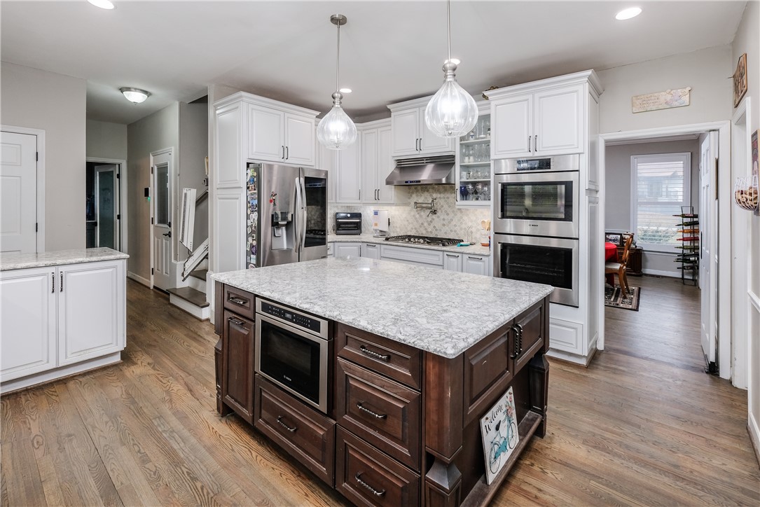 Welcome to a beautifully updated 4-bedroom, 2.5-bath residence that blends high-end modern finishes with thoughtful functionality and exceptional living space. Every detail has been refined, beginning with rich hardwood flooring that flows throughout the entire home and plantation shutters that add elegance and privacy. The main level features a dedicated office, ideal for remote work, study, or a private workspace separate from the main living areas. The heart of the home is the completely renovated kitchen—showcasing brand-new stainless-steel appliances, striking quartz countertops, a large island designed for gathering, and a generous walk-in pantry. A stylish dining room and custom built-in bookcase elevate the main living spaces, while the spacious laundry room—complete with quartz counters, backsplash, and a dedicated sink—sits conveniently beside the kitchen for everyday ease. A second staircase leads to an expansive bonus room perfectly suited for media, recreation, a play space, or a private office. All four bedrooms are located upstairs and offer impressive size and comfort. The two fully updated bathrooms feature premium finishes, including a stunning luxury primary suite designed as a private retreat. Enjoy an electric fireplace, dual vanities, a spa-inspired tile and steam shower, and a stand-alone soaking tub positioned beneath an eye-catching chandelier—an unforgettable highlight of the home. Additional upgrades include a tankless water heater, contemporary lighting, and a cohesive, modern aesthetic throughout—allowing you to move right in and enjoy. This home also offers an unbeatable lifestyle advantage. Located in Carolina Country Club, home to a premier 18-hole championship golf course regarded as one of the finest in the Upstate. Members enjoy a beautiful clubhouse, a luxurious resort-style pool, tennis and pickleball courts, and an on-site restaurant for effortless dining and socializing. Whether you golf, swim, compete, or simply enjoy a vibrant club atmosphere, this prestigious amenity elevates everyday living. Perfect for entertaining, relaxing, and indulging in an active social lifestyle, this outstanding property delivers beauty inside the home and unparalleled recreation just outside your door. Come tour this beautiful home and fall in love with the lifestyle it offers.
