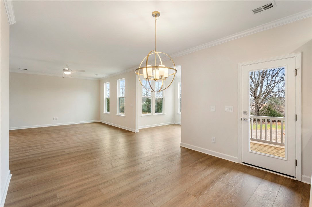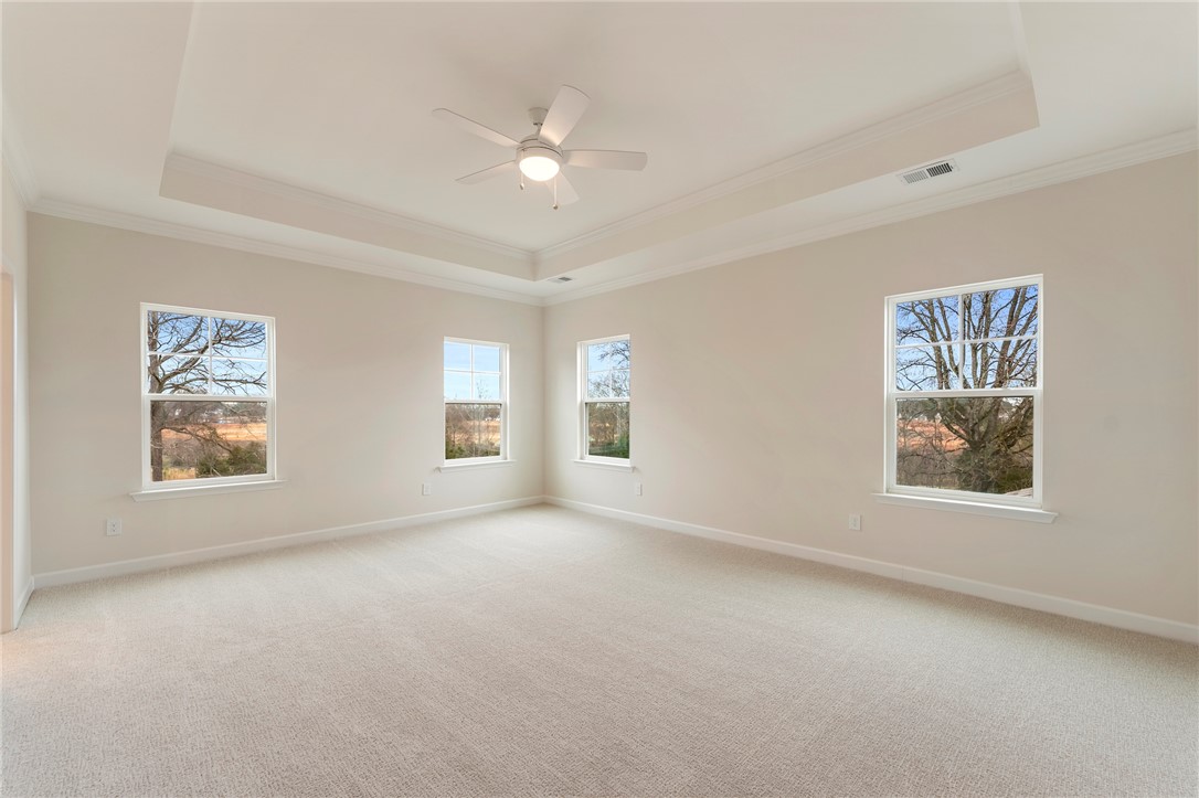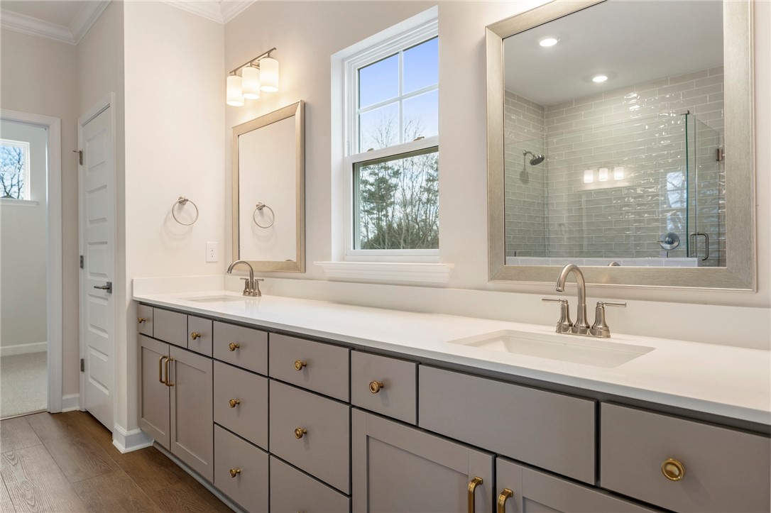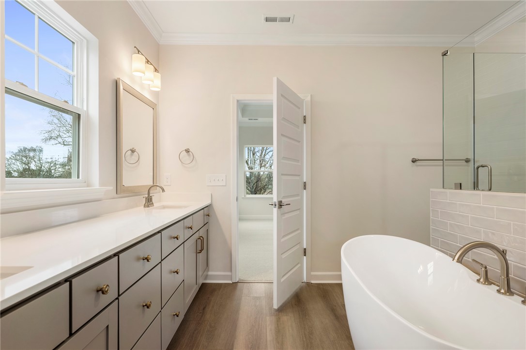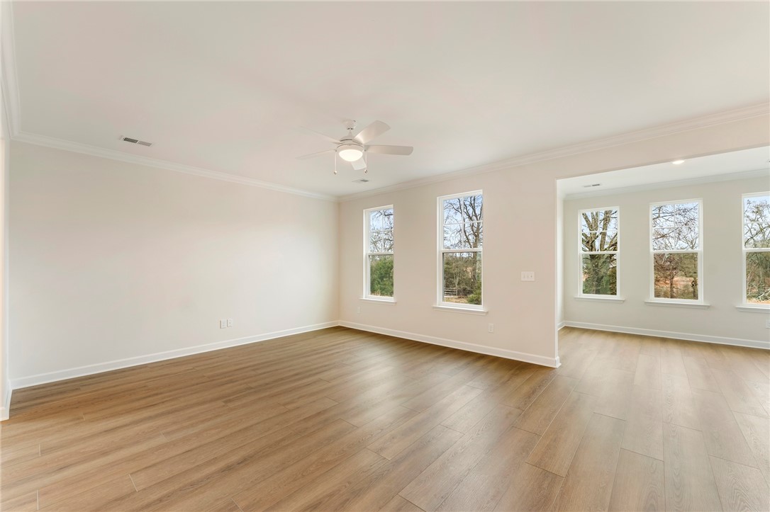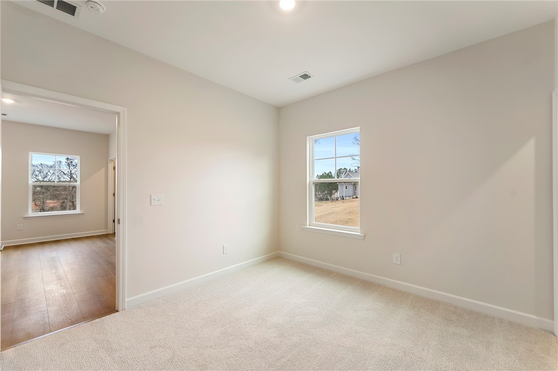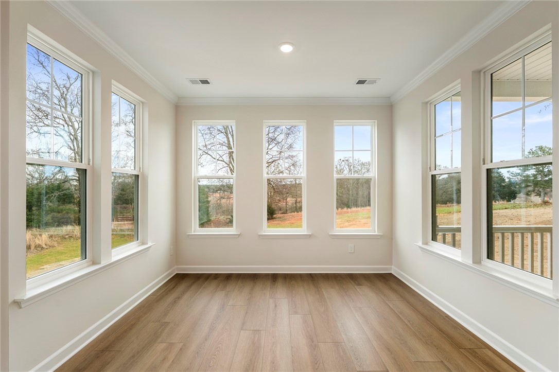 The Roland II is a two-story home with four bedrooms and three-and-one-half baths. Upon entering, you are greeted by an office space and formal dining room just beyond that on the elongated hallway. The office space contains double glass doors for privacy & class, and the dining room has two openings to the hallway & great room for extra convenience. The great room is open to the eat-in and kitchen. Off the back of the home, there is a sunroom for leisure activity and a covered porch that overlook a beautiful private wooded homesite. The kitchen contains upgraded solid surface countertops, a farmhouse sink, and stainless steel appliances. The upstairs primary bedroom includes a boxed ceiling, dual closets, and an organization space! The primary bathroom contains a luxury shower, free-standing soaker tub, and double vanities! Three secondary bedrooms are also located upstairs along with two secondary bathrooms, a spacious loft, and an enlarged laundry room with countertops and a sink. Call today for an appointment!