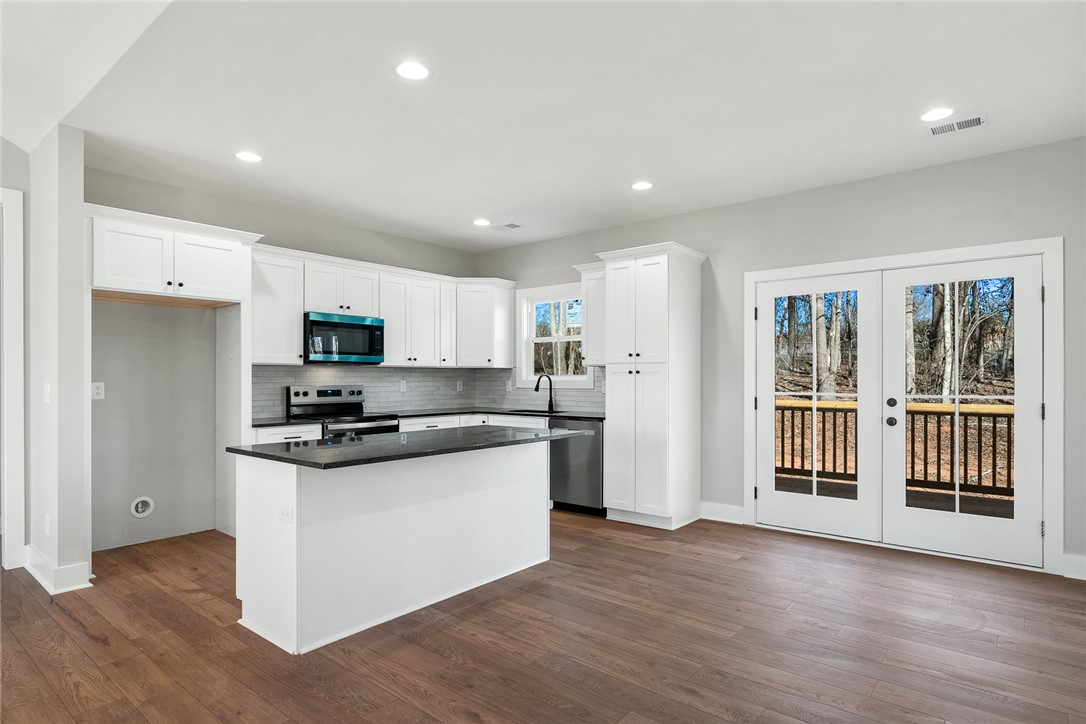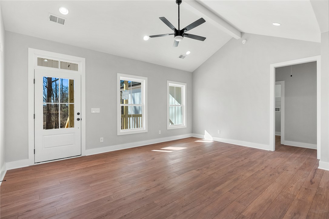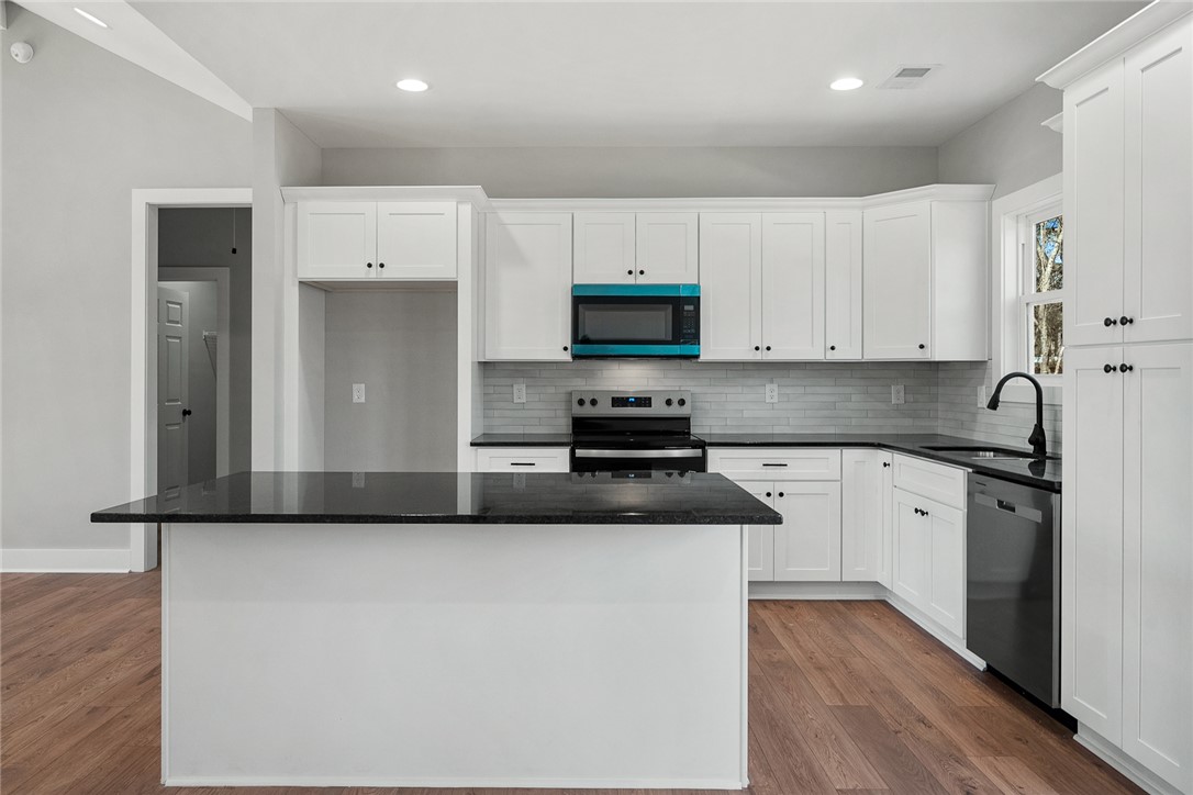 New construction, all one level, on a full one-acre lot in the TL Hanna School District with no HOA and no city taxes. This 3-bedroom, 2.5-bath home offers an open floor plan with split bedrooms and a layout designed for everyday living. The kitchen features white mission-style soft-close cabinets with black hardware, black granite countertops, stainless steel appliances, and a subway tile backsplash. Luxury vinyl plank flooring runs throughout the home, and the living room’s cathedral ceiling adds natural light and openness without feeling oversized. The primary suite includes a well-designed bathroom with a double vanity offering ample storage, a separate linen closet, a modern freestanding tub, and an extra-large tiled shower. A two-car garage plus an additional parking pad provides plenty of parking for guests or work vehicles. Located just outside the city limits, this property offers usable land, fewer restrictions, and a clean, modern finish—hard to find in this area.