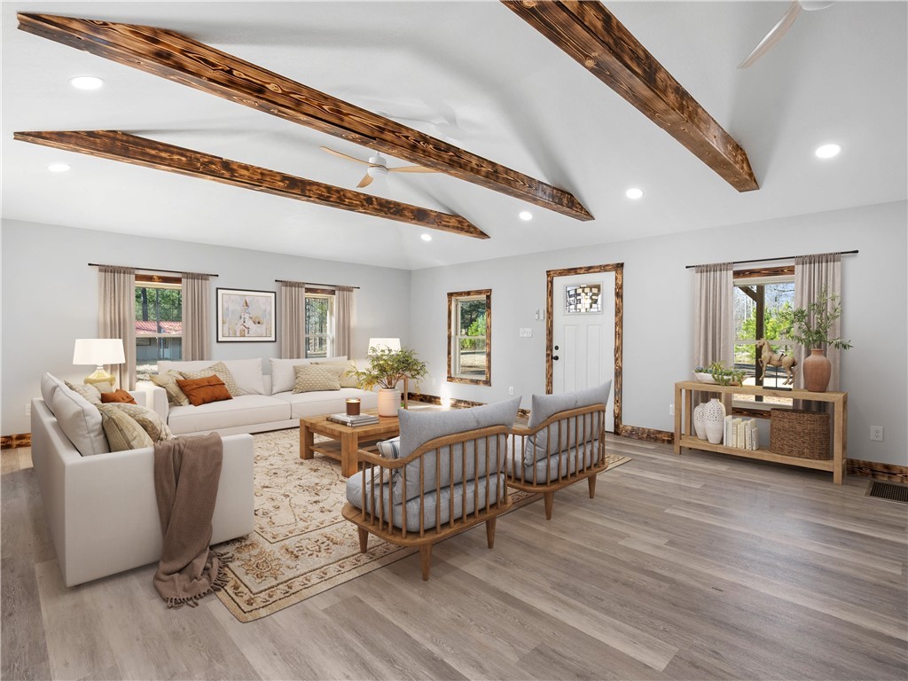 This complete renovation features a new metal roof, vinyl siding, front and rear porches, new windows. 3 brand new HVAC systems, and all new appliances are included! 3 beds, 3.5 baths and is just under 2000 sqft of living space. Plus a workshop/in-law-suite, or use your imagination what to use this for building for. RV parking with power and water and just over 1.5 acres of land. This property offers space, privacy, quality upgrades, top notch finishings, and attention to every detail. Come enjoy country living at its best! *Photos with furniture and decor are virtually staged*