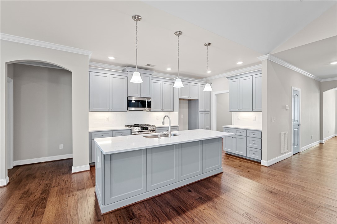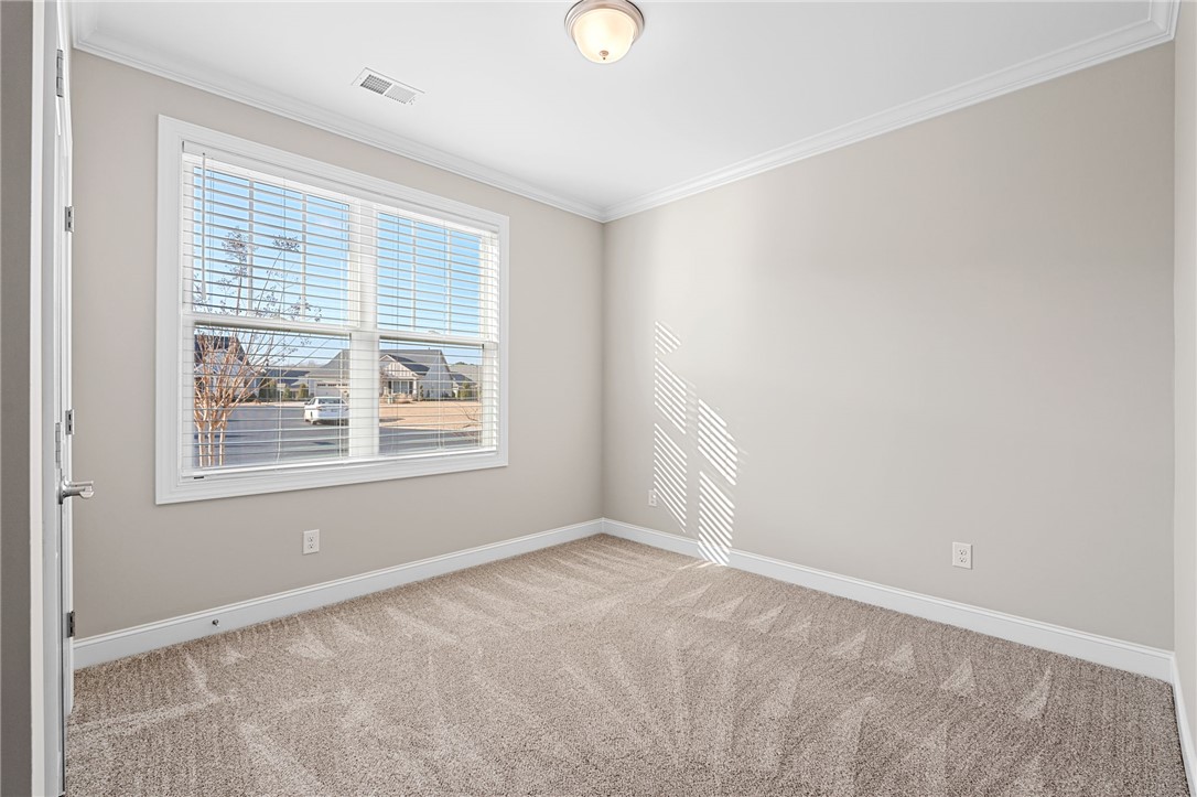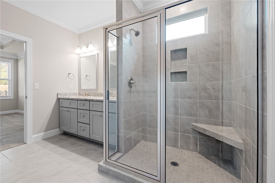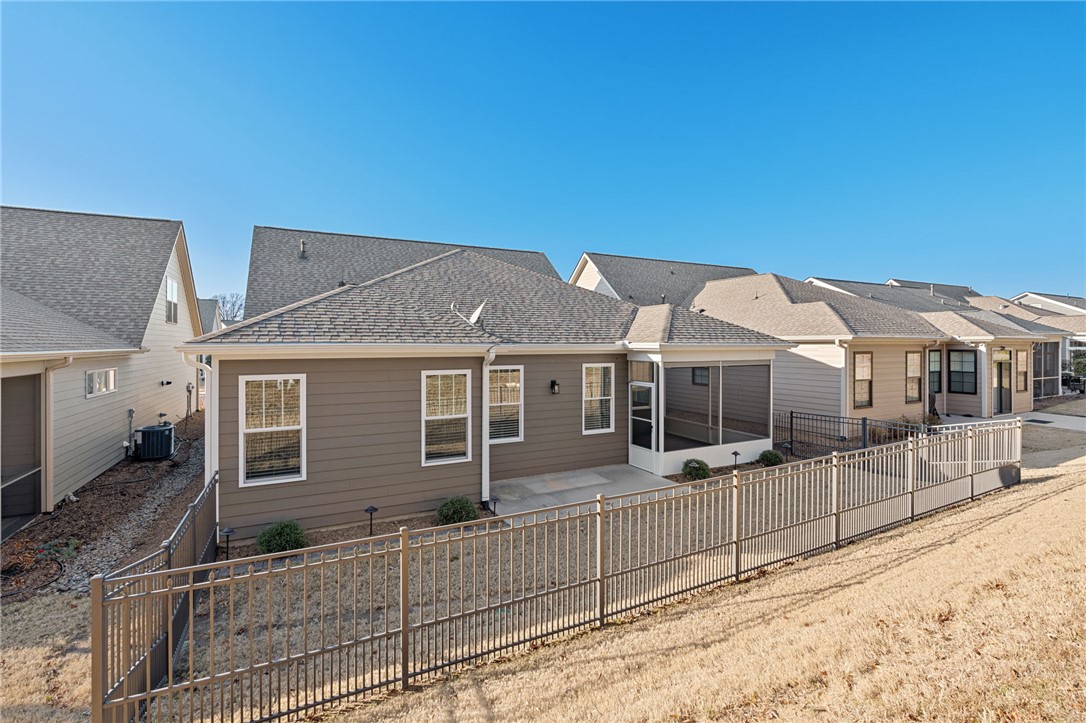 Welcome to an experience of refined, effortless living in the highly sought-after, gated community of the Cottages at Harrison Bridge. This elegantly appointed three-bedroom, two-bathroom residence encompasses 2,261 square feet of meticulously curated comfort, seamlessly blending custom craftsmanship with modern amenities. From the distinguished Hardie Board siding and striking stacked stone accents to the lush, professionally maintained landscaping, this home offers undeniable curb appeal. Upon entry, you are greeted by a gracious foyer adorned with rich hardwood floors. The thoughtfully designed split floor plan situates two bedrooms at the front of the home, leading into an expansive, open-concept living space. The gourmet kitchen, featuring upscale finishes and a generous island, overlooks the spacious family room, which boasts soaring vaulted ceilings and an inviting gas fireplace—an ideal setting for entertaining guests or enjoying quiet evenings at home. The dedicated dining area, positioned adjacent to the kitchen, offers a picturesque view of the living room, enhancing the sense of openness and connectivity throughout the main level. The main-level primary suite provides a serene retreat, complete with a spacious bedroom, dual-sink vanity, and a luxurious glass-enclosed shower. Upstairs, a substantial flex space serves perfectly as an office, den, media room, or craft area. A large walk-in attic affords abundant storage solutions for your convenience. Practicality is seamlessly integrated with style in the laundry room, which features a deep utility sink, extensive shelving, and direct access to the garage. Outdoor living is elevated with a private screened-in porch and patio, creating a tranquil oasis for relaxation. The property also includes professionally installed landscaping lighting in both the front and rear yards, a fenced (ARC-approved) area ideal for pets, and a French drain to efficiently manage excess water during periods of heavy rain or runoff. Residents enjoy truly low-maintenance living, with a homeowners association that provides comprehensive lawn care, landscaping, irrigation, and street lighting services—all within the security of a gated neighborhood. The quarterly HOA fee is $465 ($155 per month), with an additional $10 monthly fee for homes featuring a fenced yard. If you are seeking a lifestyle that harmoniously combines sophistication, comfort, and convenience, this exceptional home presents the perfect opportunity.