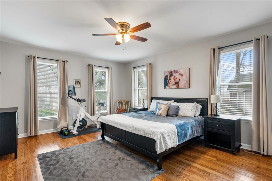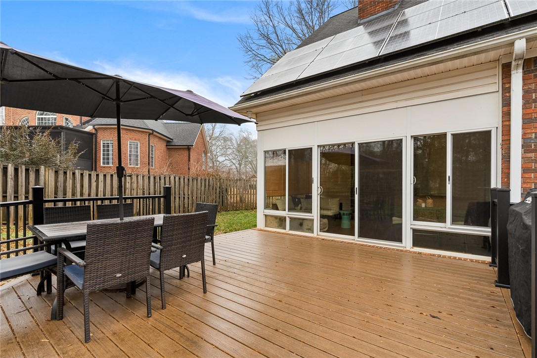Welcome home to this beautifully maintained 4-bedroom, 2.5-bath residence located in the desirable Cobbs Glen golf community. Offering approximately 2,717 square feet, this home features a thoughtfully floorplan that enhances both daily living and entertaining, with gorgeous hardwood floors throughout the main level, an expansive, updated eat-in kitchen featuring ceramic tile flooring, tile backsplash, stainless steel appliances, and custom cabinetry, a large, separate dining room, and a spacious living room with fireplace creating a warm and inviting central gathering space. A bright sunroom located just off the kitchen fills the home with natural light and offers additional flexible living space, with access to the fenced backyard, making it ideal for relaxing or entertaining. The primary suite is conveniently located on the main level and includes a walk-in closet and a private bath with a jetted spa tub and separate shower, providing a relaxing retreat. Three additional bedrooms and one bath are situated upstairs, ideal for family, guests, or a home office. Enjoy outdoor living from the beautiful front porch, perfect for morning coffee or evening relaxation along with the fenced backyard ideal for pets, play or gatherings. Two new HVAC units and a new hot water heater provide peace of mind and the new back deck offers additional space for outdoor entertaining. The home also includes a two car side entry garage. Located in the TL Hanna School District. Near shopping, dining and major routes, this property combines comfort, functionality and community living in one exceptional offering The HOA now includes use of the recently renovated Junior Olympic Swimming pool!!