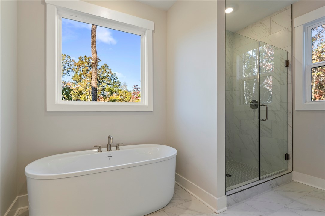 The CHADWICK floorplan with this VIEW of the lake, you have found your DREAM HOME! Currently under construction and nestled in the woods on Lake Hartwell in Gaineswood Cove, this stunning craftsman style home is one you will need to see. The CHADWICK is a favorite for everyone, a split floor plan that offers 3 bedrooms on the main floor, with a luxurious master suite complete with a freestanding tub, large walk in shower, his and her vanity and walk in closets. An open floor plan, fireplace, and oversized kitchen island make the perfect atmosphere for entertaining. The farmhouse sink and gourmet appliances are every chef's delight for the kitchen. Upstairs, you will find a beautiful flex room complete with full bath, perfect for guests. Step out onto the VAULTED covered patio and enjoy your favorite morning drink while experiencing breathtaking sunset views of the lake. With its modern amenities and timeless farmhouse appeal, this home is a must see! ***Lot is NOT dockable*** but you CAN access the lake at the back of the lot. Photos are of a home with the same floor plan but different interior selections. Interior selections for this home are on the slides showing selections. ASK LISTING AGENT if you would like to change any interior selections or upgrades to make it your own! Love this home and want to build in a different location, specifically designed for you? We have several lots in Anderson County and surrounding areas that we can build on OR we can build on a lot you already own!