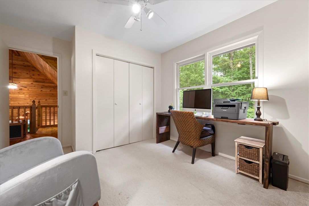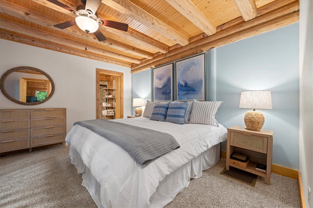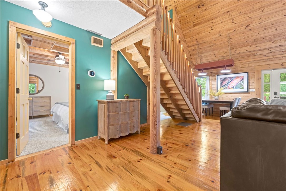 Charming Log Cabin Retreat Near Lake Hartwell Welcome to this beautifully crafted log cabin, where rustic charm meets modern comfort just a few hundred feet from the sparkling shores of Lake Hartwell. Nestled on a gently sloped lot and accompanied by one additional forested parcel, this property offers privacy, space, and your very own walking trail—perfect for peaceful morning strolls or nature adventures. Step inside to a stunning great room with a soaring cathedral ceiling and gleaming, honey-colored hardwood floors, creating a warm and inviting space for gatherings. The open-concept kitchen seamlessly flows into the living area, making it ideal for entertaining. The kitchen features a tile floor, built-in microwave, stove, and refrigerator. The kitchen continues the log cabin theme with thoughtful touches and convenient access to the laundry room, complete with washer and dryer. The main-floor primary suite is a true retreat, offering a spacious layout, a full en-suite bath with a walk-in shower, and elegant ceiling beams that enhance the cozy, refined feel. Upstairs, you'll find two generously sized bedrooms and a second full bath, all accessed by a beautifully crafted pine staircase. Located in an amenity-rich neighborhood, this home offers more than just a great living space. Residents enjoy access to South Carolina’s largest community pool, with food service and a restaurant open Thursday through Saturday, featuring indoor and outdoor seating. Stay active with pickleball, tennis, and basketball courts, and look forward to upcoming renovations, including a gym and expanded recreation space in the clubhouse. Whether you're looking for a peaceful full-time residence or a weekend getaway, this log cabin is the perfect blend of nature, comfort, and community living. Short-term rentals are allowed. Home is 38 minutes from Clemson University, 1 hour from Greenville SC, and 2 hours from Atlanta.