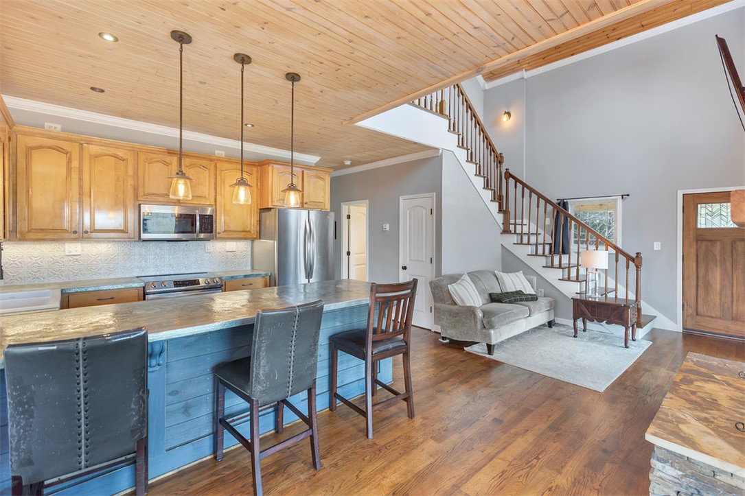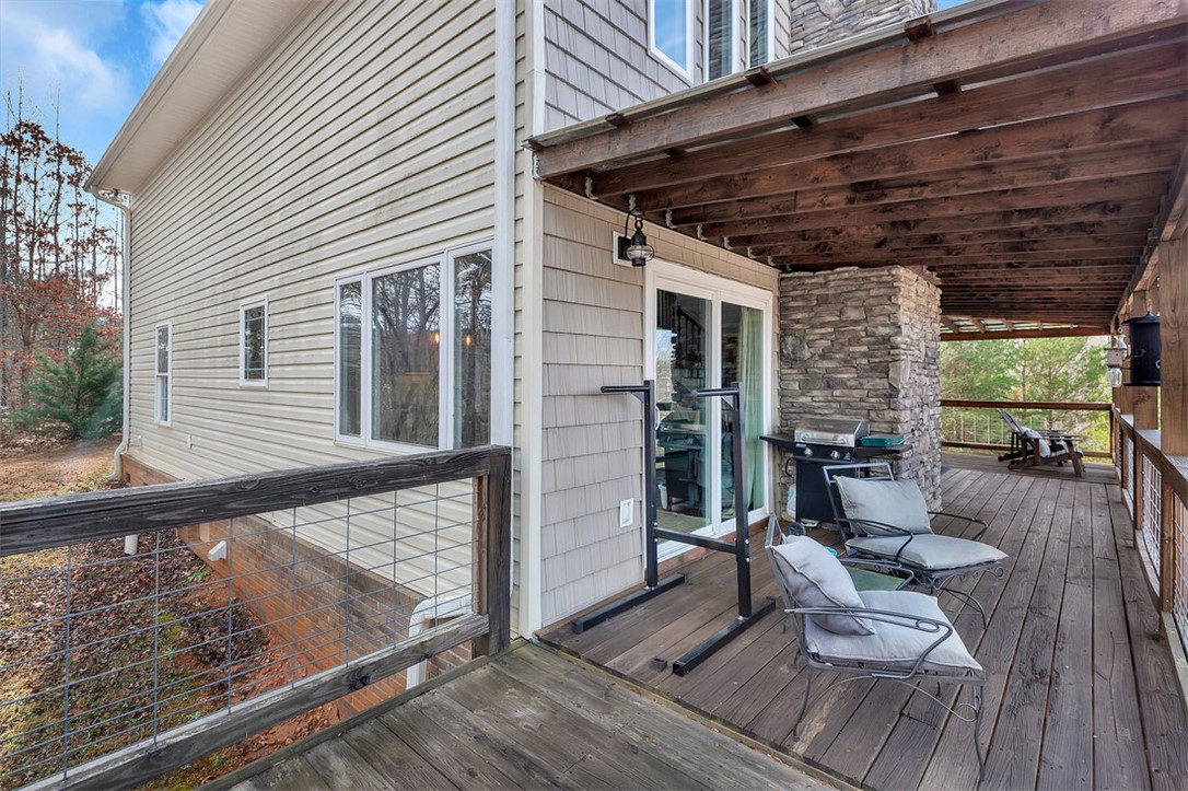 Welcome to serene living on the Chauga River! Tucked away at the end of a private road, this retreat offers expansive mountain views, river frontage, and the kind of peace you usually have to drive hours to find. Situated on nearly 5 secluded acres along the Chauga River, this beautiful 3-bedroom, 2-bath home welcomes you with the feeling that you’ve truly arrived at your own oasis. Inside, you’ll find hardwood floors, all-new tile in the kitchen and baths, stainless steel appliances, custom-built closet shelving throughout, and striking food-grade hammered zinc countertops in the kitchen. Every room captures scenic views, while the primary suite features a private balcony overlooking the property—perfect for quiet mornings with coffee. After a day spent on the river, unwind in the jetted Jacuzzi tub or relax by the fireplace as the sounds of nature fill the air. Outdoor living shines with a wraparound deck ideal for grilling and soaking in the panoramic mountain views. Storage and flexibility abound with a large walk-out basement, perfect for a workshop or additional storage, plus an oversized 8-car garage just a short walk from the home—ideal for boats, ATVs, river toys, vehicles, and more. With direct river access, complete privacy, and a prime location just 20 minutes from Clayton, GA, 15 minutes from Seneca, 5 minutes from Lake Hartwell, and within easy reach of Lake Keowee, Lake Jocassee, and Clemson University, this one-of-a-kind property truly offers the best of mountain, river, and lake living. All this home is lacking is its new owner - what are you waiting for?