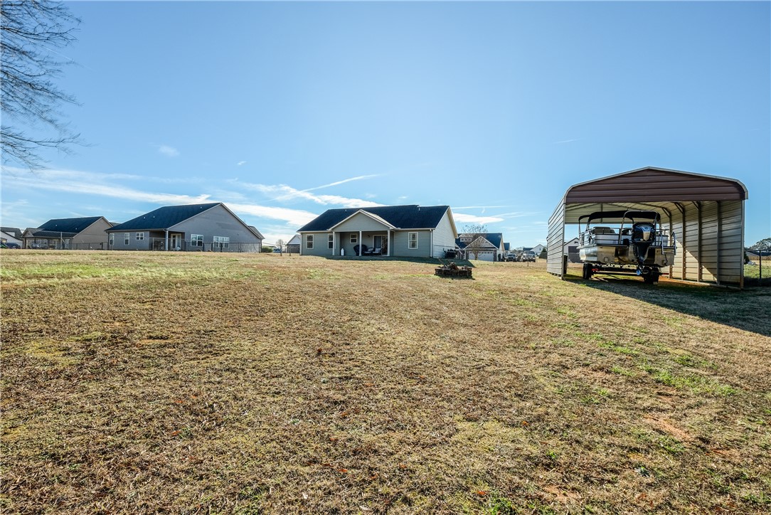 Welcome home to this well-maintained 3-bedroom, 2-bath home offering easy one-level living on a spacious lot of over half an acre. The split, open floor plan creates a comfortable and functional layout, perfect for both everyday living and entertaining. The large primary suite features walk-in closets and a double vanity, providing a relaxing private retreat. Step outside to a covered back porch overlooking a large, fenced-in backyard—ideal for outdoor dining, relaxing, pets, gardening, or entertaining. Enjoy lake living close by, with Lake Hartwell just minutes away and only 2.4 miles to Greenpond Landing, where you can launch your boat. This home offers the perfect blend of space, comfort, and convenient access to lake life.