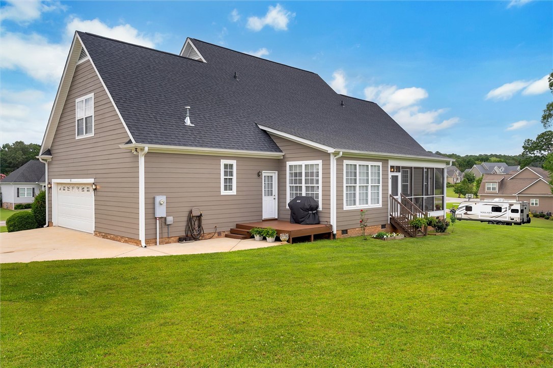 Welcome to this beautifully maintained 2-story home offering approximately 3,600 sq ft of well-designed living space on a spacious .70-acre lot in the highly sought-after Eden’s Ridge neighborhood with an exceptionally low HOA of just $150 per year. This 4-bedroom, 3.5-bath home features a thoughtful floor plan ideal for everyday living and entertaining, with numerous updates throughout and meticulous care making it truly move-in ready. The main level offers a cathedral-ceiling den with a cozy fireplace, a formal living room ideal for entertaining or a home office, and a primary suite on the main floor with an ensuite bath featuring a jetted soaking tub, separate walk-in shower, and a large walk-in closet. The well-appointed kitchen includes quartz countertops, a center island, abundant cabinetry, a coffee bar with desk area, and both a formal dining room and a light-filled breakfast nook overlooking the backyard. Upstairs, you’ll find 3 generously sized bedrooms and a versatile bonus room ideal for a playroom, media room, or guest space. Outdoor living includes a rocking-chair front porch, screened-in back deck, and dedicated grilling area, while the standout garage and additional outbuilding with RV power hookups provide exceptional flexibility and storage. Conveniently located just minutes from Lake Keowee and within the highly regarded Daniel High School district, this home offers an ideal blend of space, functionality, and location.