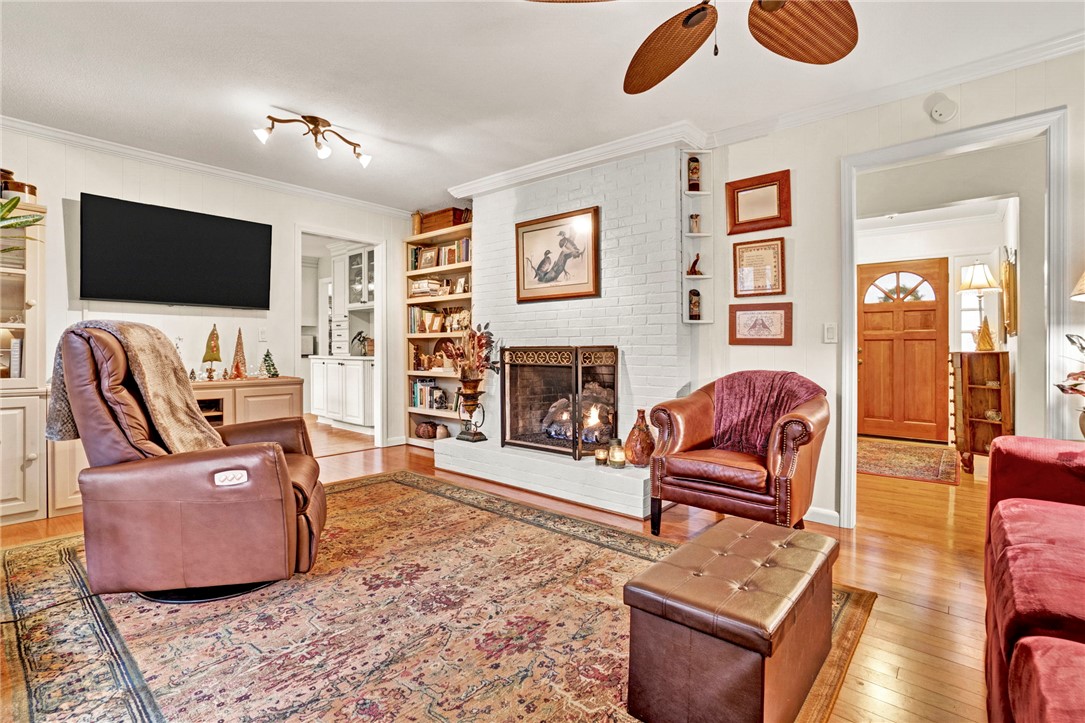 Welcome home to 106 Hillandale, ideally located with convenient access to I-85, Greenville, and Clemson University. This well-maintained 4-bedroom home offers the ease of single-level living, with all bedrooms on one floor, including two private en-suite bedrooms. A few recent upgrades include new flooring throughout and a beautifully renovated kitchen featuring cork flooring with new stainless steel appliances. A new primary ensuite with laundry room and mudroom entry. Enjoy both formal living and dining rooms, a cozy fireplace, and a bright three-season room perfect for relaxing year-round. Outdoors, gardeners will delight in the thoughtfully designed yard complete with a 10x12 garden house and an 8x10 greenhouse—ideal for hobbyists and green thumbs alike. Meticulously cared for with newer roof and hvac system. This home blends comfort, functionality, and location in one exceptional package.